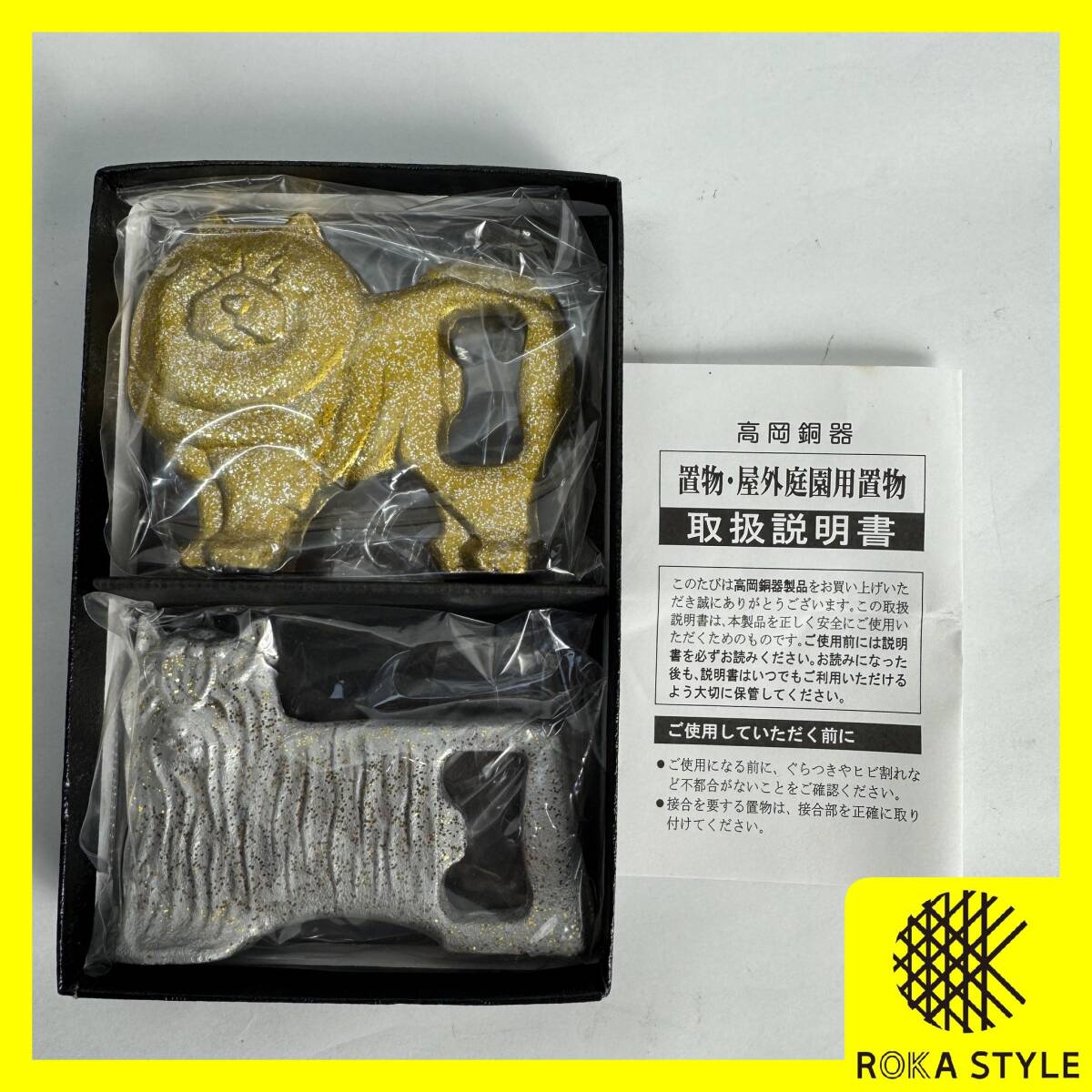 高岡銅器 置物 屋外庭園用 2個セット 犬 いぬ 戌年 ヨークシャーテリア チャウチャウ オブジェ 縁起物 開運 風水 長期保管品 C2b R71203