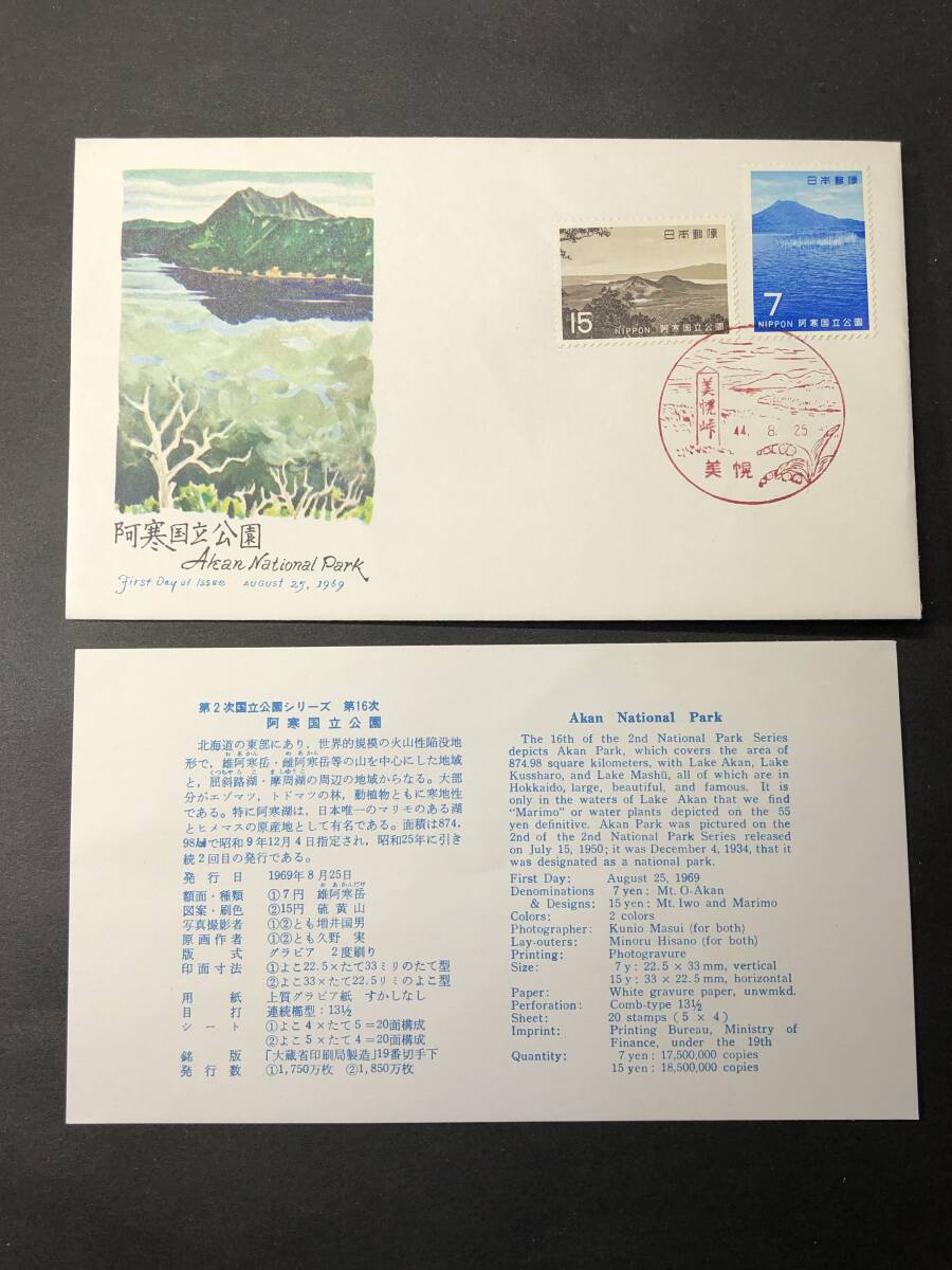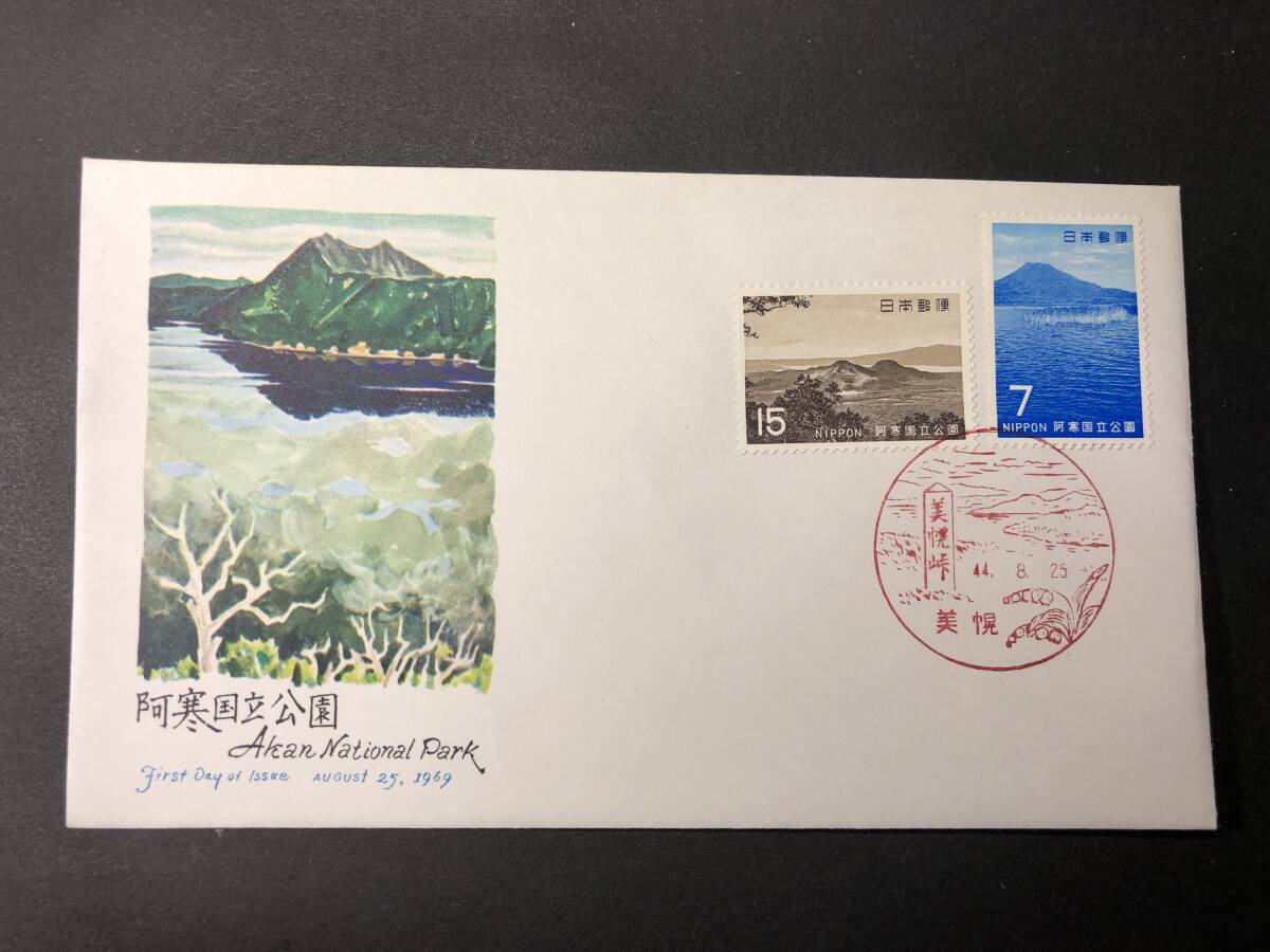 ★FDC 初日カバー★阿寒国立公園 7円「雄阿寒岳」/15円「硫黄山」 2種張 NCC版 昭和44年発行 Y9625