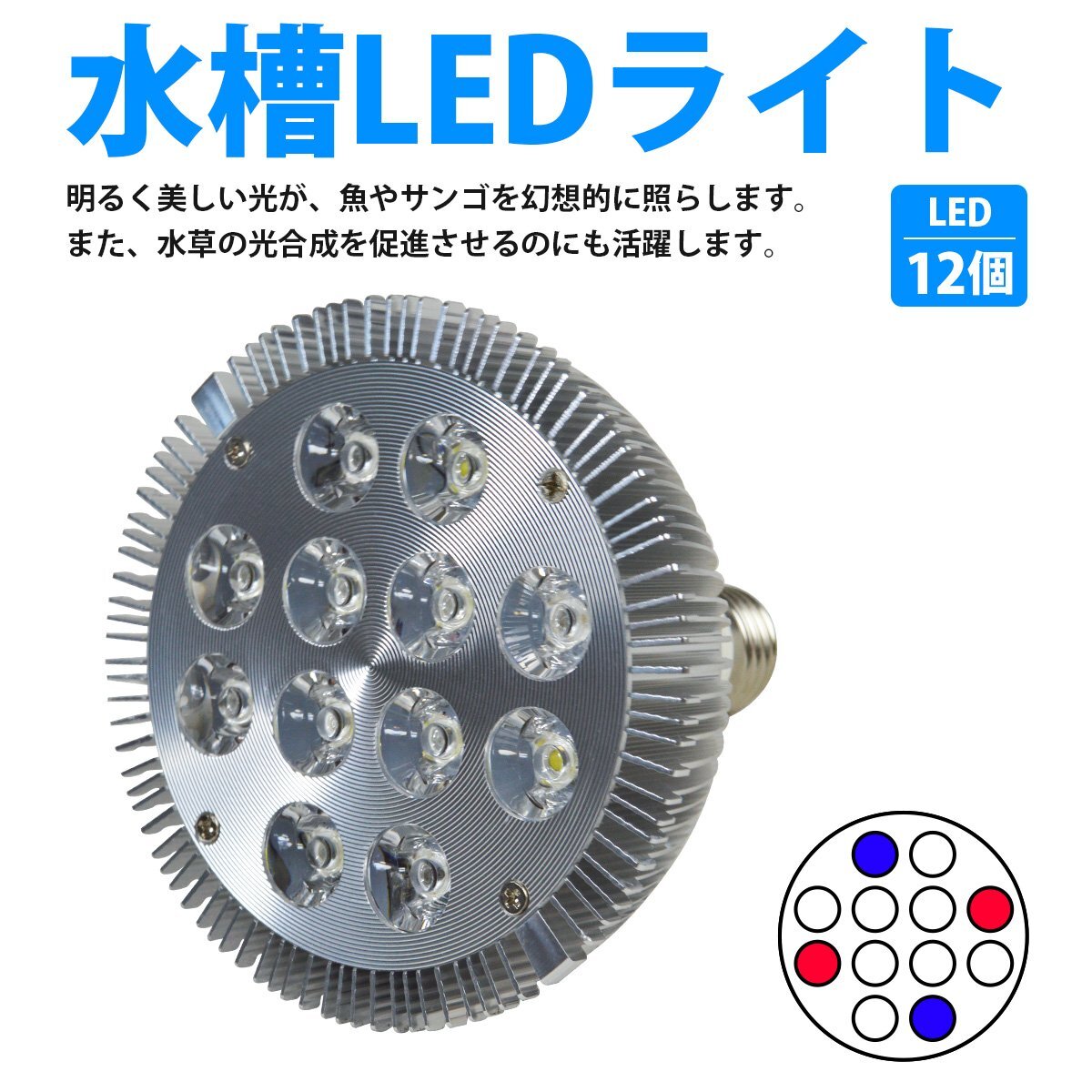 【新品即納】[白8/青2/赤2] 24W(2W×12) 電球 E26 口金 水槽 用 照明 植物育成 スポット ライト 12LED アクアリウム 電球 水草 サンゴ