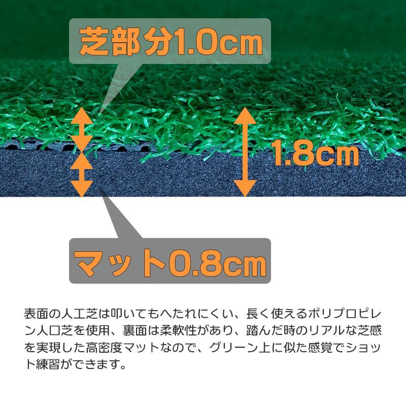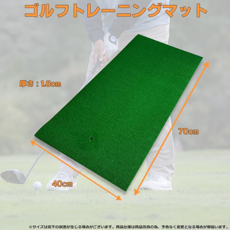 ◆商品詳細◆ 〇サイズ ・縦:約40cm ・横:約70cm ・厚さ:18mm 〇仕様 ・叩いてもへたれにくいポリプロピレン人工芝を使用。 ・肉厚EVAマットでダフっても響きにくい。 ・ティー1個付き。