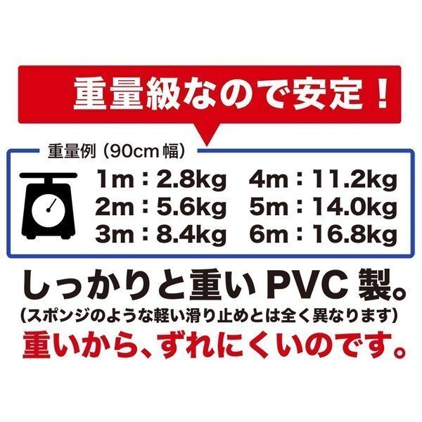 90cm幅1mあたり2.8kg。ロングサイズの6mの場合は16.8kg。
