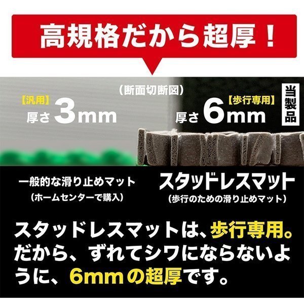 スタッドレスマットは6mmの超厚仕様なので、踏まれることでシワになることはありません。