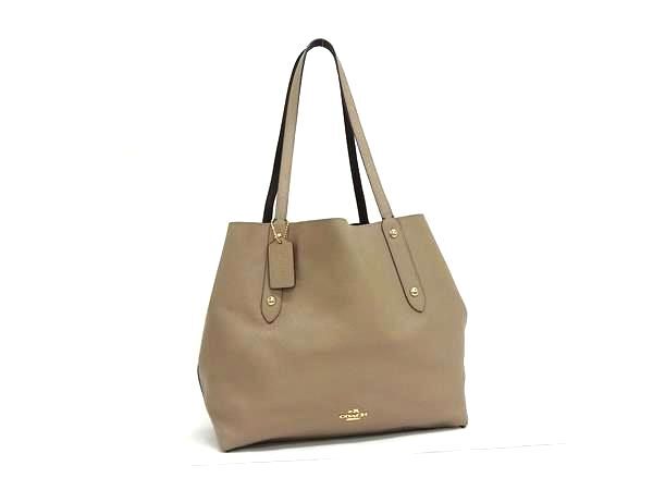 1円 COACH コーチ PVC×レザー リバーシブル ハンドバッグ トート ショルダー レディース ブラウン系×ベージュ系 GA6063