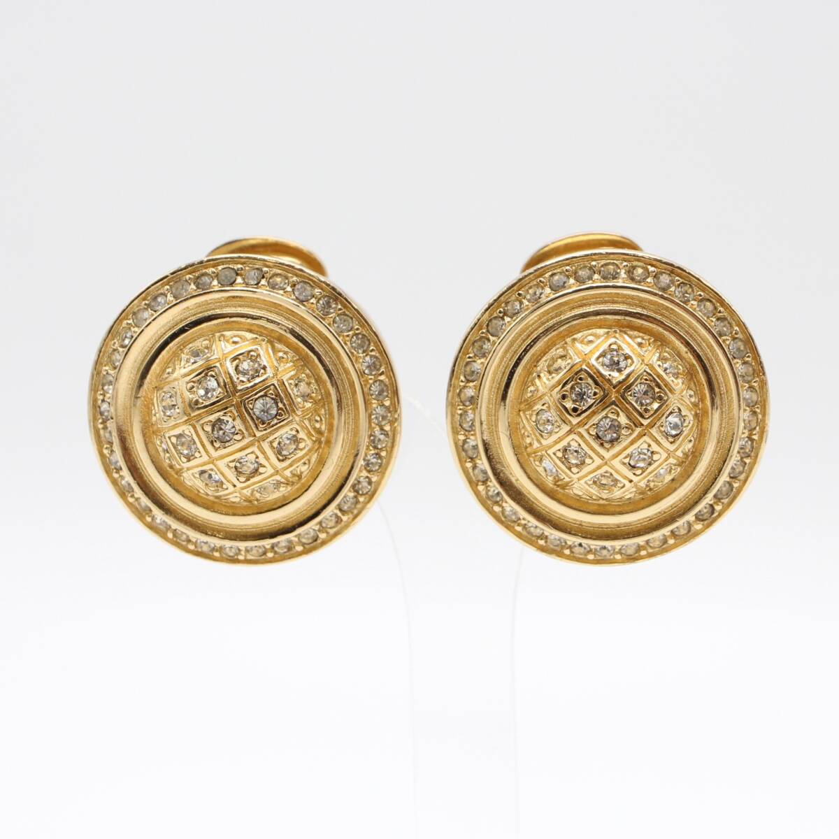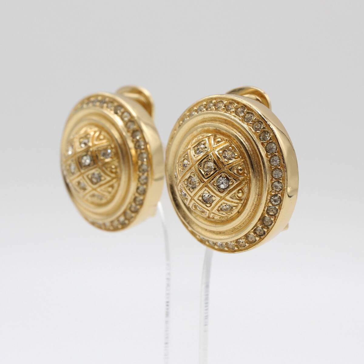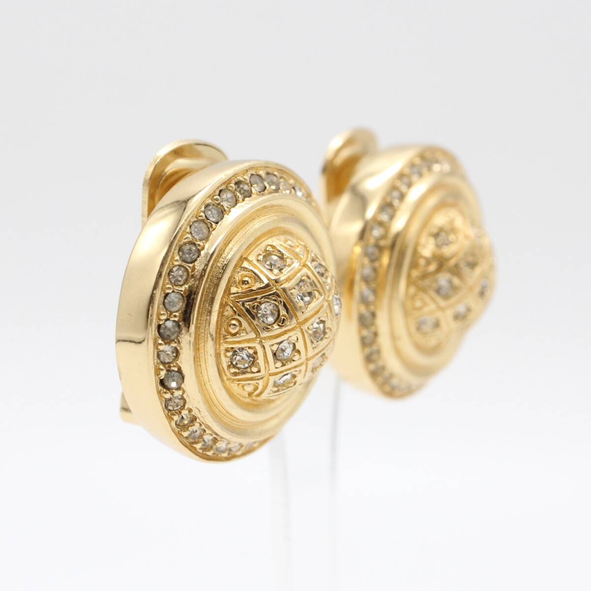 【Christian Dior クリスチャンディオール】 ゴールド ラインストーン イヤリング 両耳 レディース アクセサリー