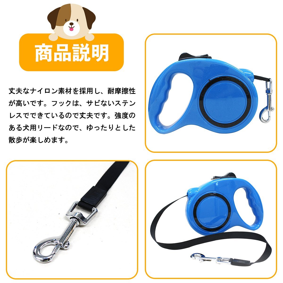 便利なロック機能付き!犬用伸縮リード 5m/5メートル 自動巻き取り ブルー 青 散歩用リード コンパクト ペット用品 散歩グッズ