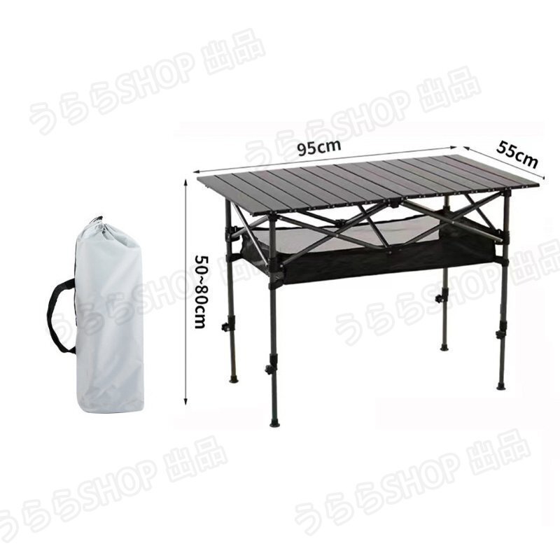 ■長さ95cm、幅55cmのテーブルトップ、軽量、調節可能なテーブル脚、テーブルの底にあるメッシュバッグ収納デザイン、屋外ピクニックに非常に適しています。