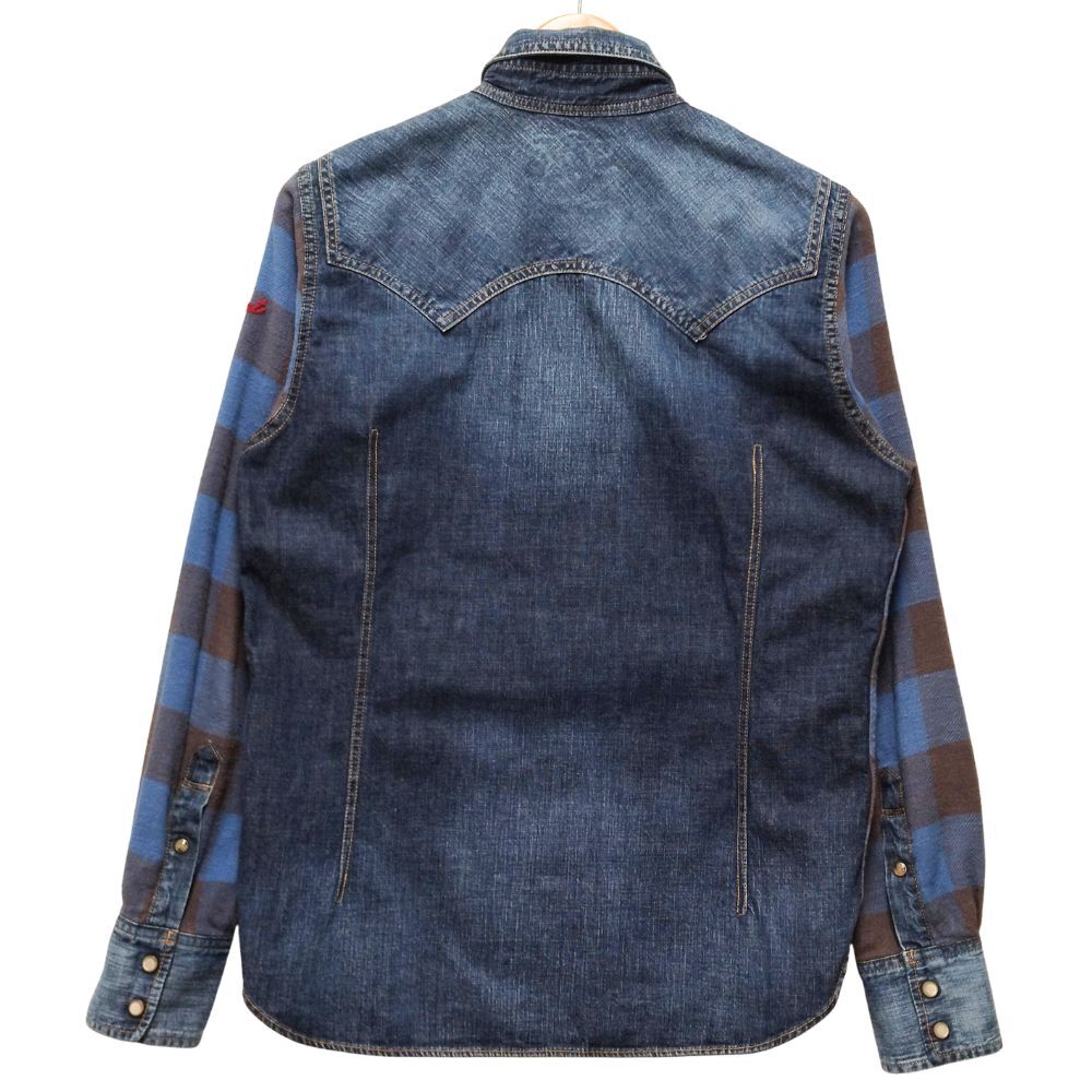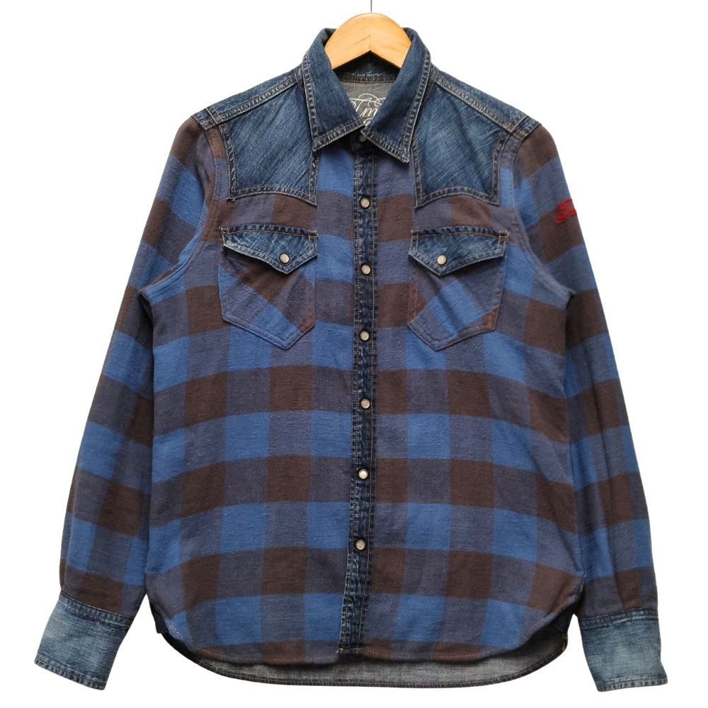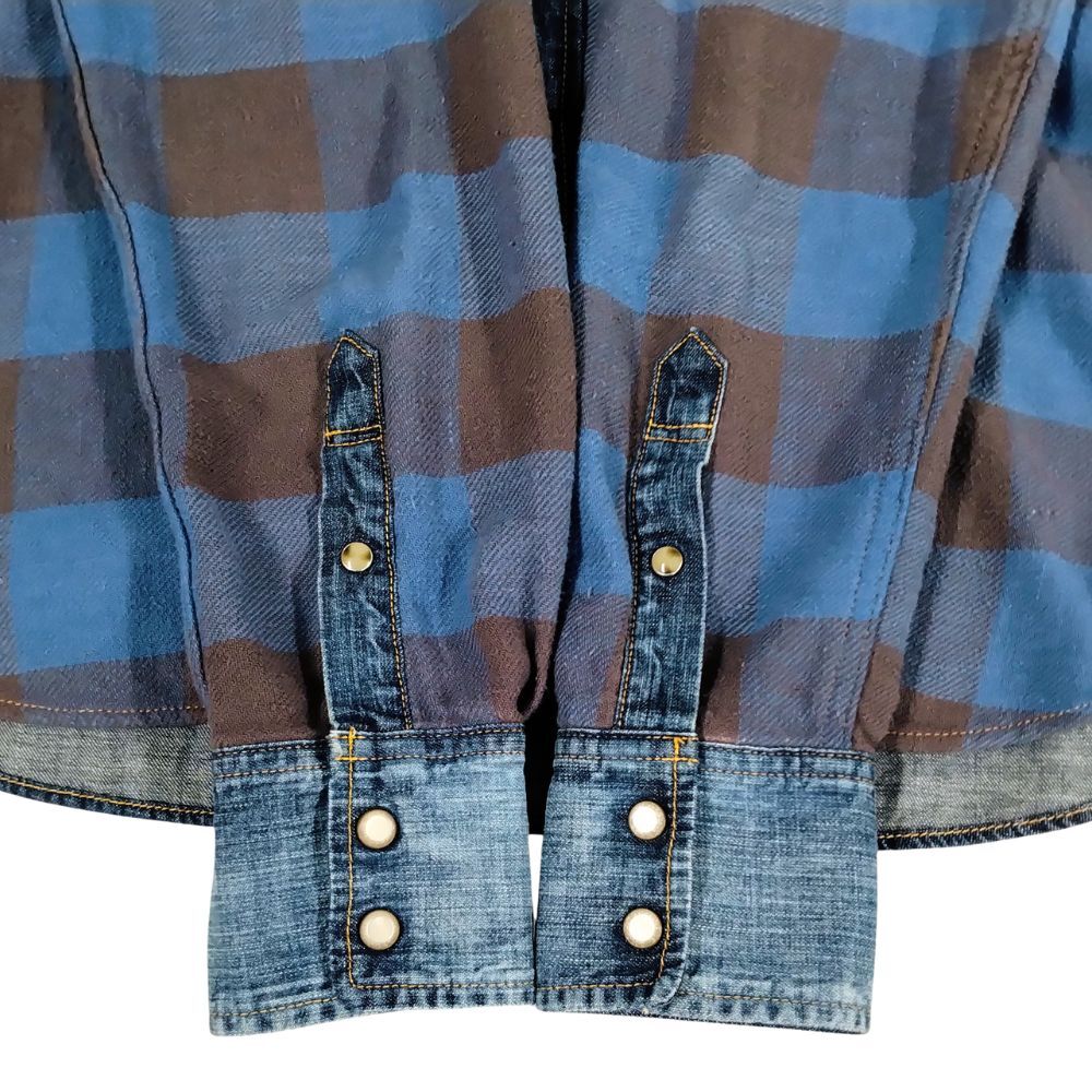商品名 TMT ティーエムティー デニム切替し ブロックチェック ウエスタンシャツ 長袖 ブルー系 サイズM 正規品 / 53044