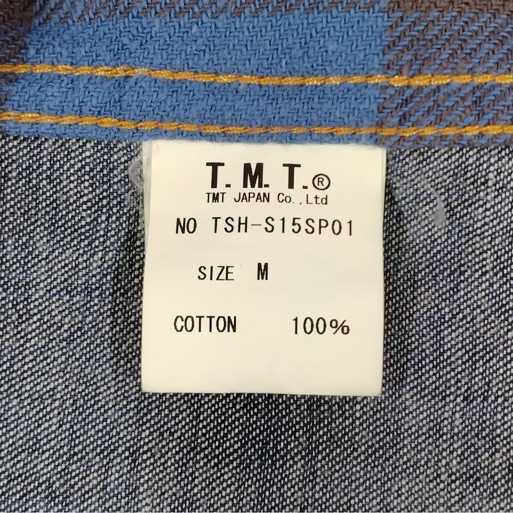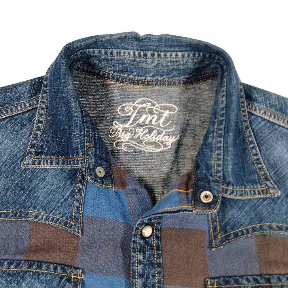 TMT ティーエムティー デニム切替し ブロックチェック ウエスタンシャツ 長袖 ブルー系 サイズM 正規品 / 53044