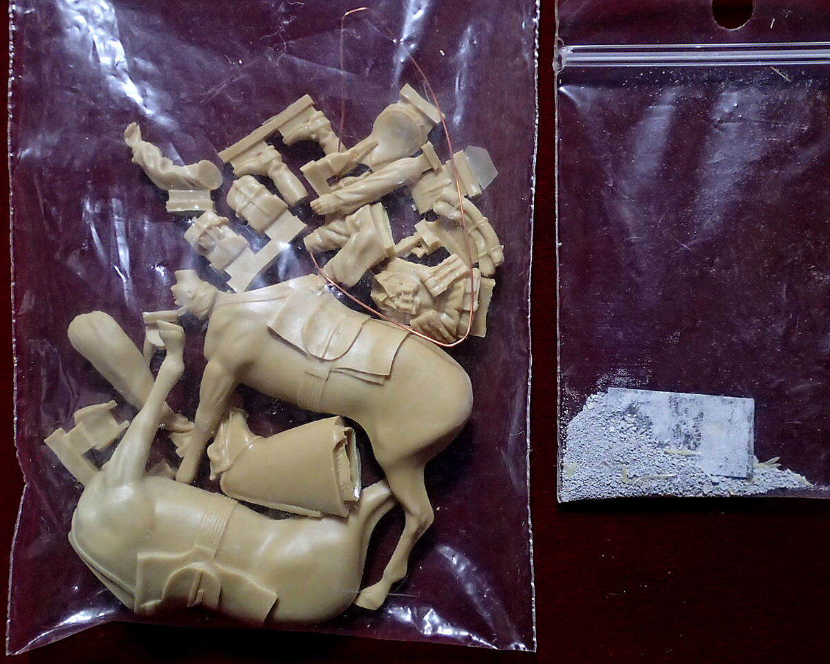 ●ドイツ軍武装親衛隊、騎兵師団の兵士と軍馬がバーリンデンならではの精密でリアルなモールドで再現されています。馬の積荷や兵士装備品類のほか、鉛版や銅線、砂等も付属しています。ビネットやジオラマの製作に如何ですか・・・レジンの特性を理解された上級者向きの現在手に入り難い希少キットです。