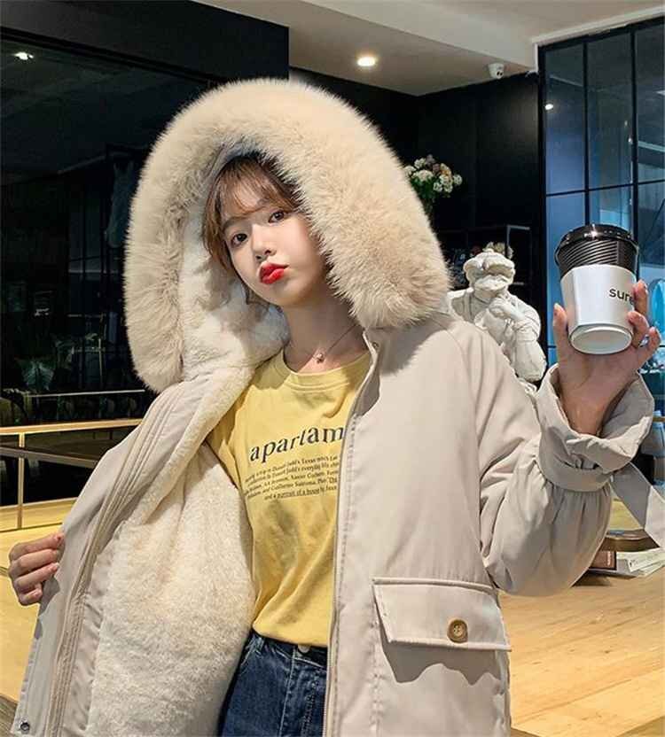 コットン ショート丈 裏起毛 ジッパー ダウンジャケット ファー フード付き 2XL グリーン