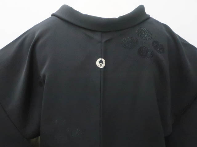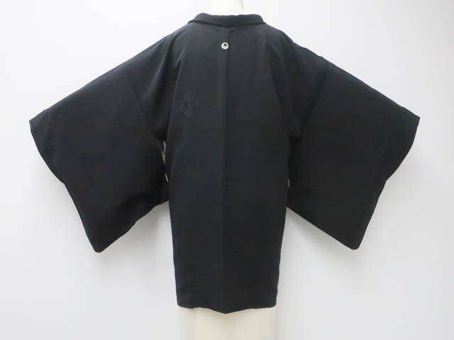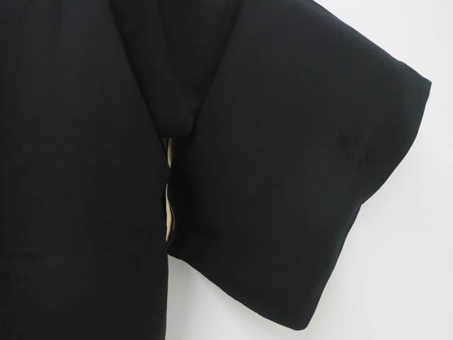 リサイクル商品のため、羽裏、肩下にうすしみがございますがご着用いただけると存じます。 地色は 黒です。 1枚目の画像が近いお色かと思われます。 素材は正絹です。 |