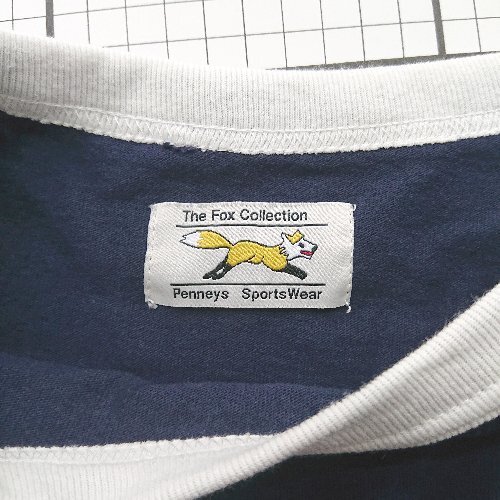 ◇ ⊂ フォックスコレクション ワンポイント きつね 半袖 ワッペンキャラTシャツ サイズM ネイビー系 レディース E