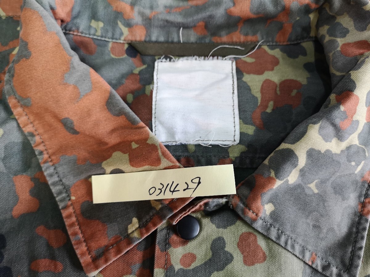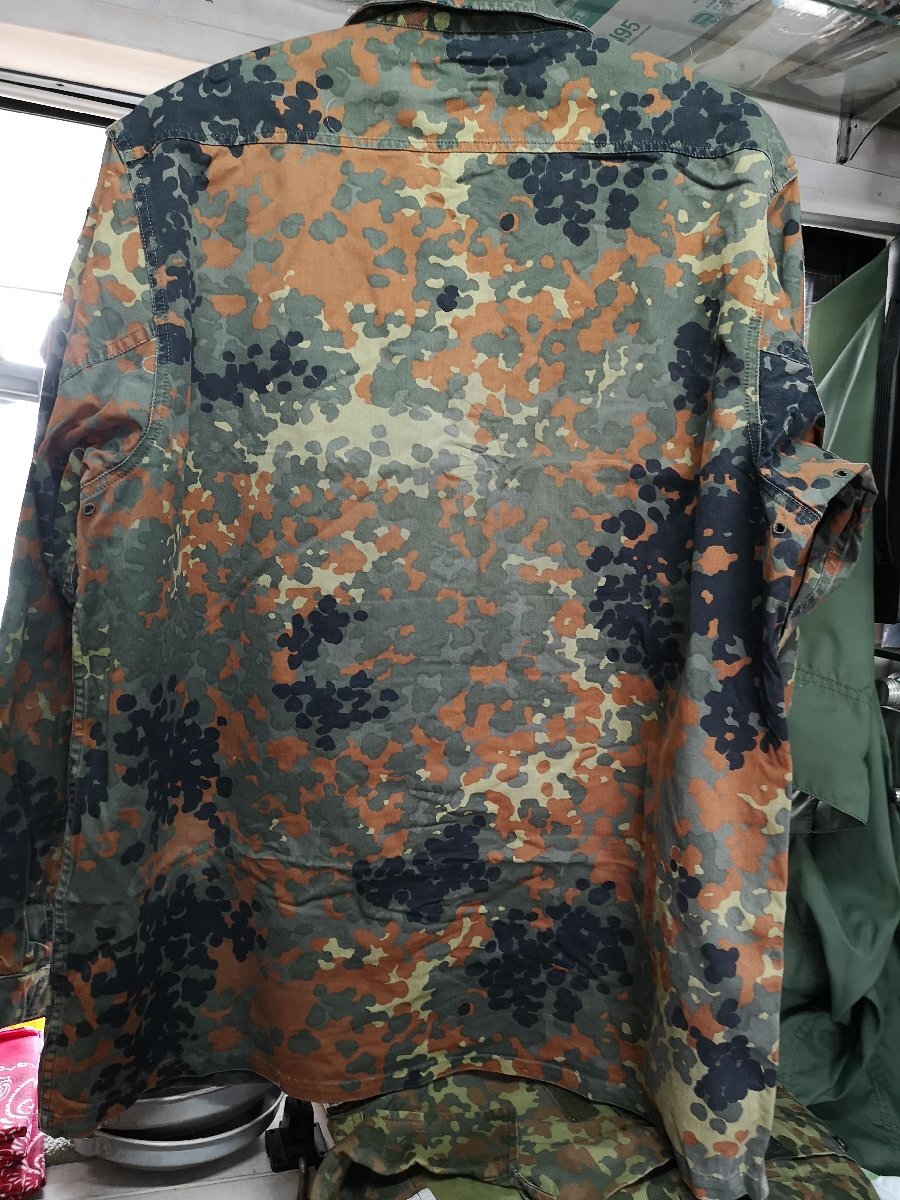 ドイツBW放出のフレクターカモのシャツジャケット、薄手の生地ですがフロントはジッパーとホックの併用で便利です。 これは表示は不明で日本人XLサイズ程度、丈75cm・身幅62cm・肩幅52cm・袖63cm程度になります。 コンディションは全体に適度に色落ちした感じで特に汚れや補修もないです。 沖縄離島を除く全国500円でお送りいたします、落札価格にプラスでお願いいたします。