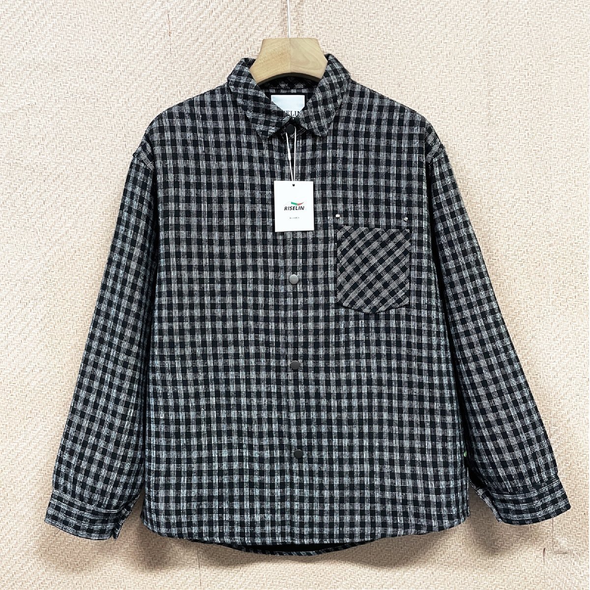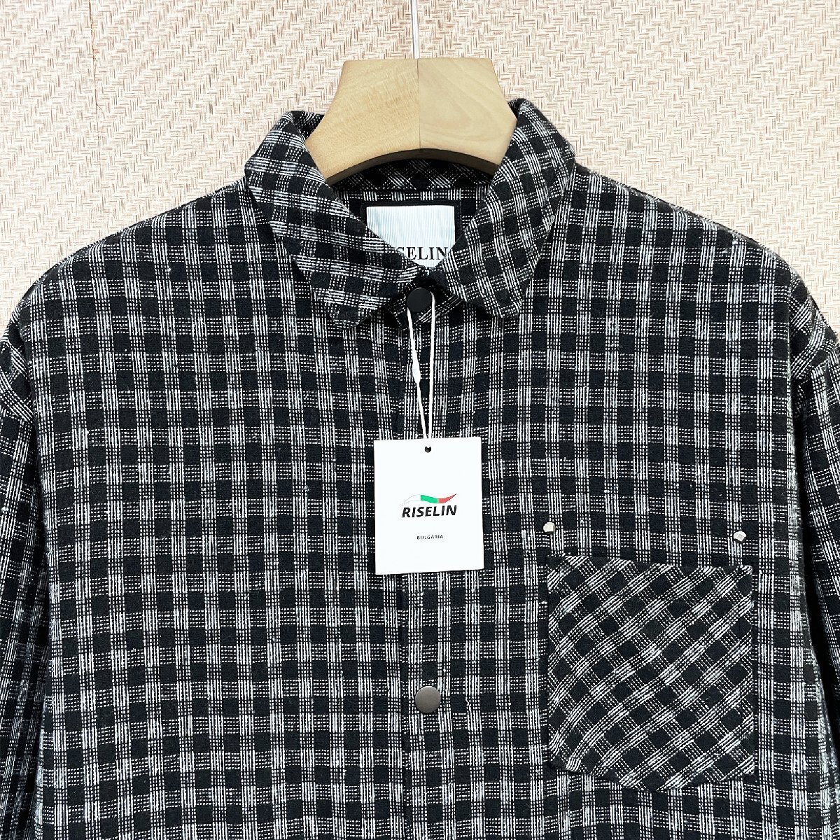 人気ヨーロッパ製※定価4万◆ブルガリア発※RISELIN 長袖シャツ 綿混 個性 ソフト 保温 チェック柄 折り襟 ジャケット トップス 春秋 XL/50サイズ