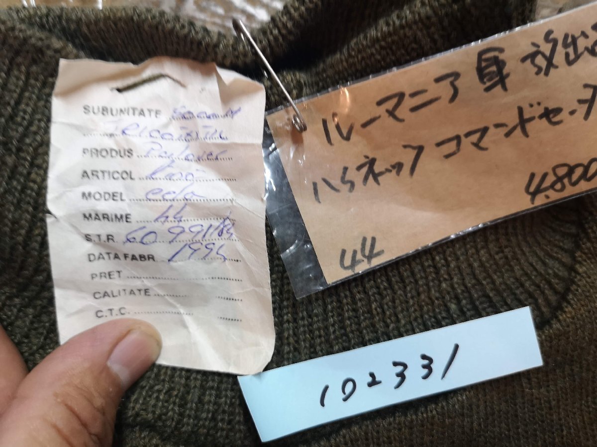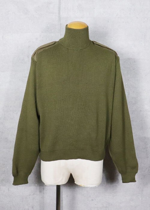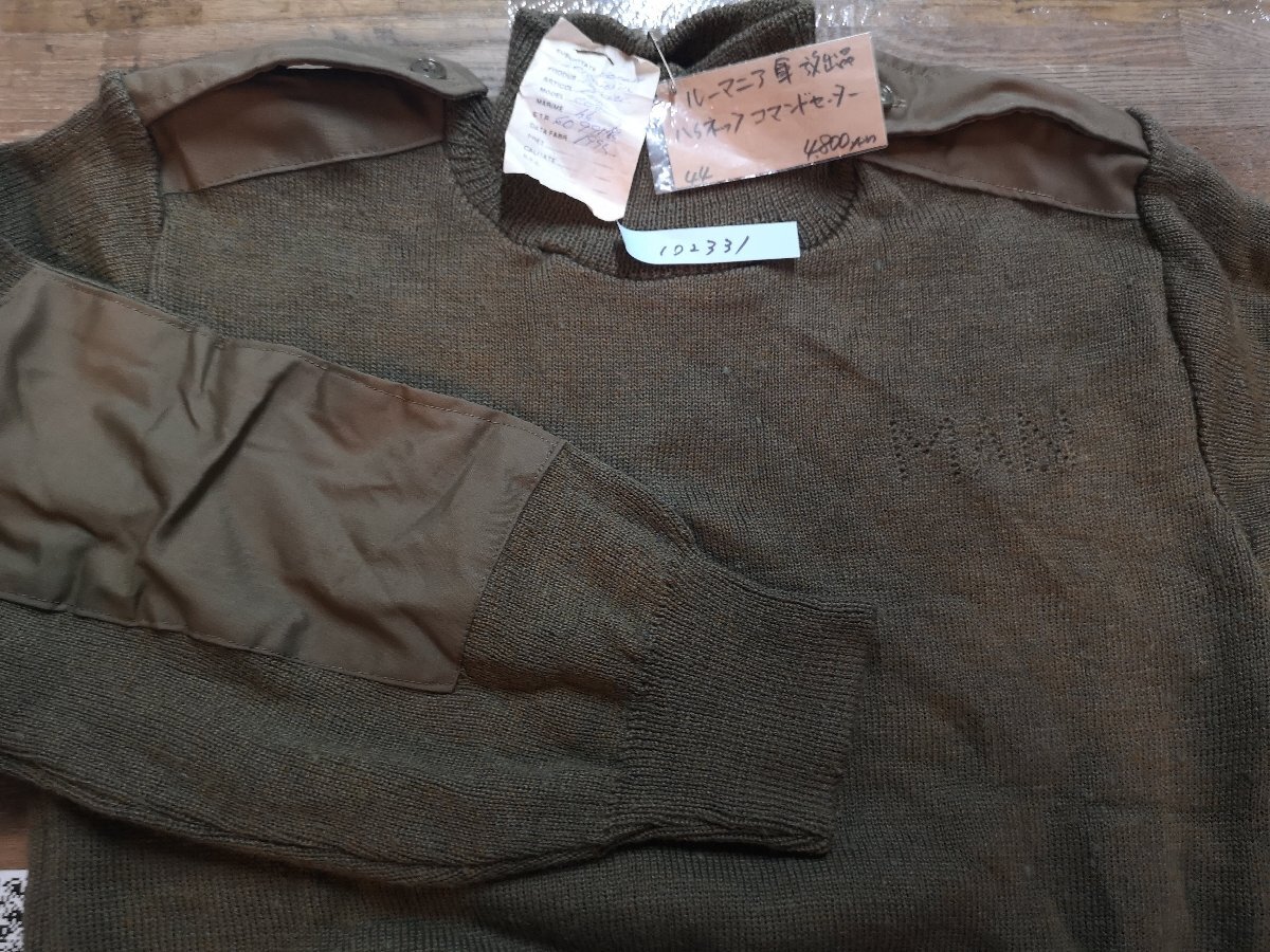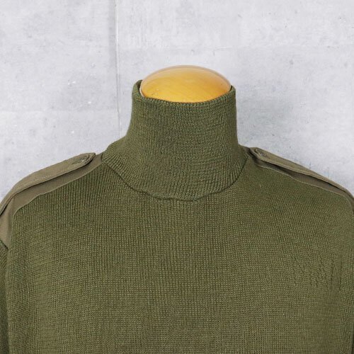 ルーマニア軍にて90年代頃に採用されていたハイネックコマンドセーターです。 ハイネック仕様になっており、シルエットが着丈短めのデザインが特徴的なアイテムです。 セーラーパンツなどのフレアパンツからハイウエストなパンツとの相性も良く男女問わず着用頂けます。 5枚目までの写真は流用です。 ●サイズ表示44 身幅54cm、着丈60cm、肩幅43cm、袖55cm ●素材:おそらくウール ●状態:デッドストック (未使用品ですが長期にわたり倉庫にて保管されていた商品)の為、日焼け、色ブレなどがございます。ご了承ください。 サイズ表記XS 肩幅52cm 袖丈60cm 身幅58cm 着丈65cm程度です 。 沖縄離島を除く全国500円でお送りいたします、落札価格にプラスでお願いいたします。