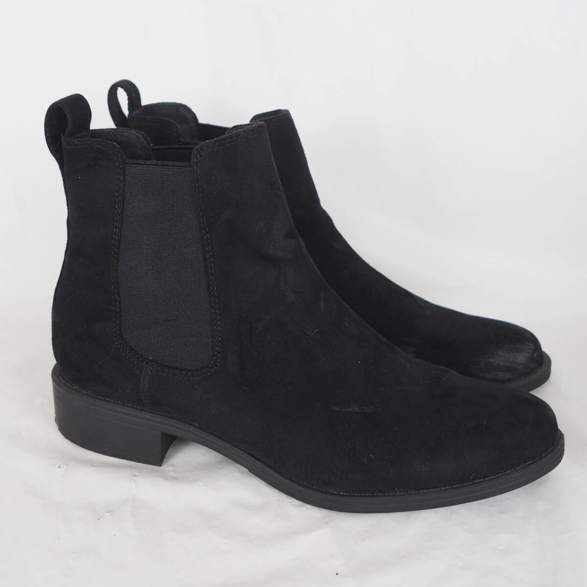 | ページをご覧いただきありがとうございます^^靴、ブーツを中心に出品しております。 シンプルなブラックカラーが使いやすく、幅広いコーディネートに馴染むサイドゴアブーツです。 スエード調素材の柔らかな質感が大人らしい雰囲気を演出し、季節感のあるスタイルを楽しめます。 安定感のあるフラットソールで歩きやすく、デイリーに活躍する一足です。 ☆商品詳細☆