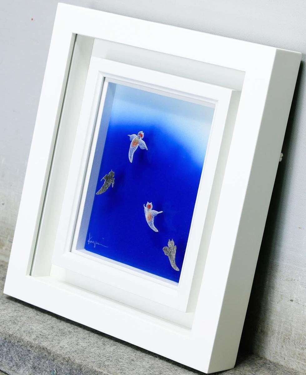 【真作】【WISH】松崎和実「クリオネ」箔画 0号 プラチナ箔仕様 共シール ◆深い青に踊る   〇箔画で注目 美濃和紙に箔 #25112923