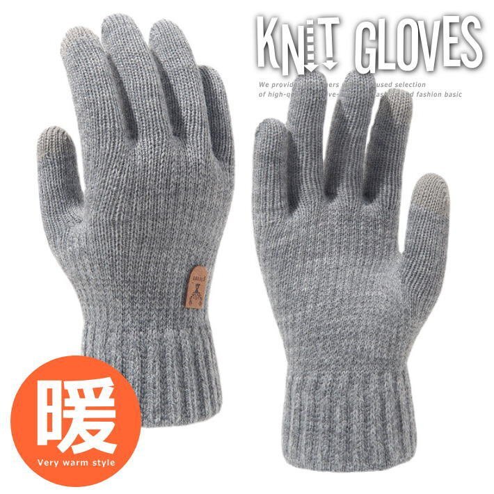 手袋 メンズ レディース 防寒 防寒手袋 グローブ ニット素材 アウトドア キャンプ スノボ スキー 7987220 グレー 新品 1円 スタート