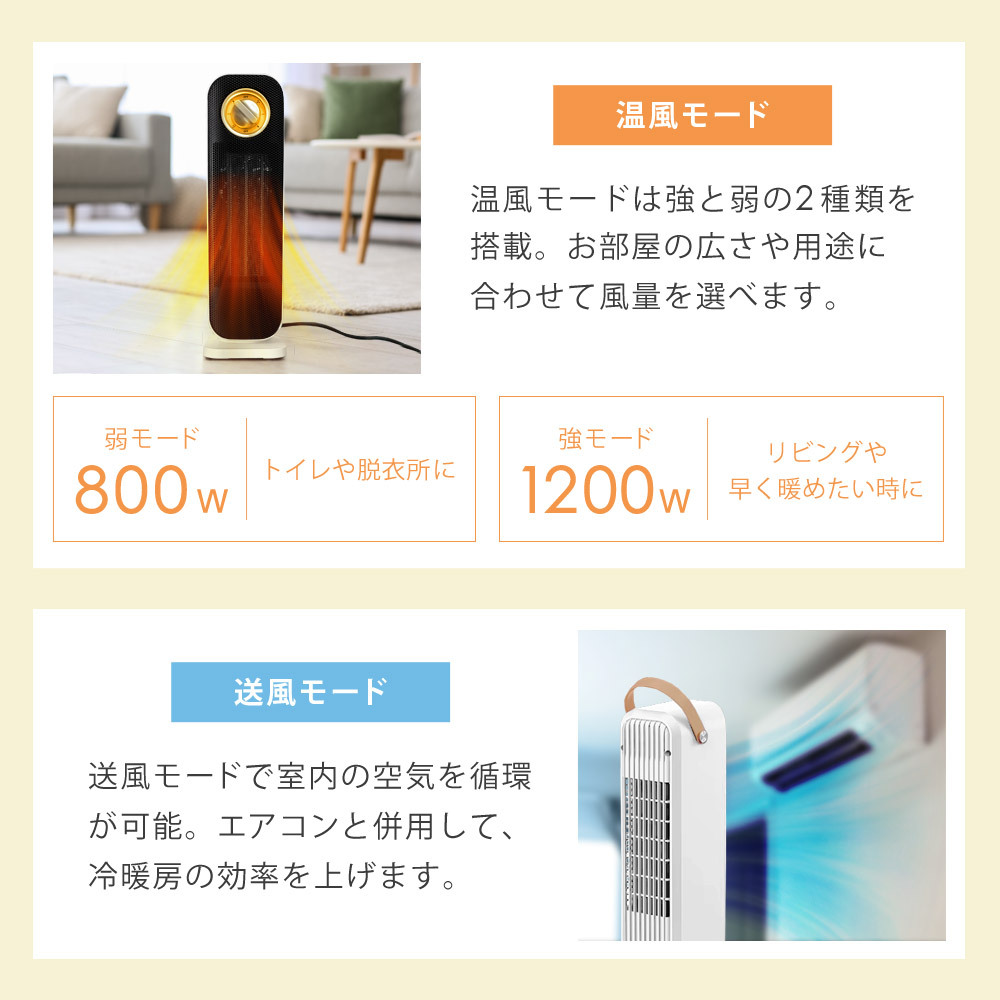 | 消費電力 | 1200W/800W/6W(送風) |