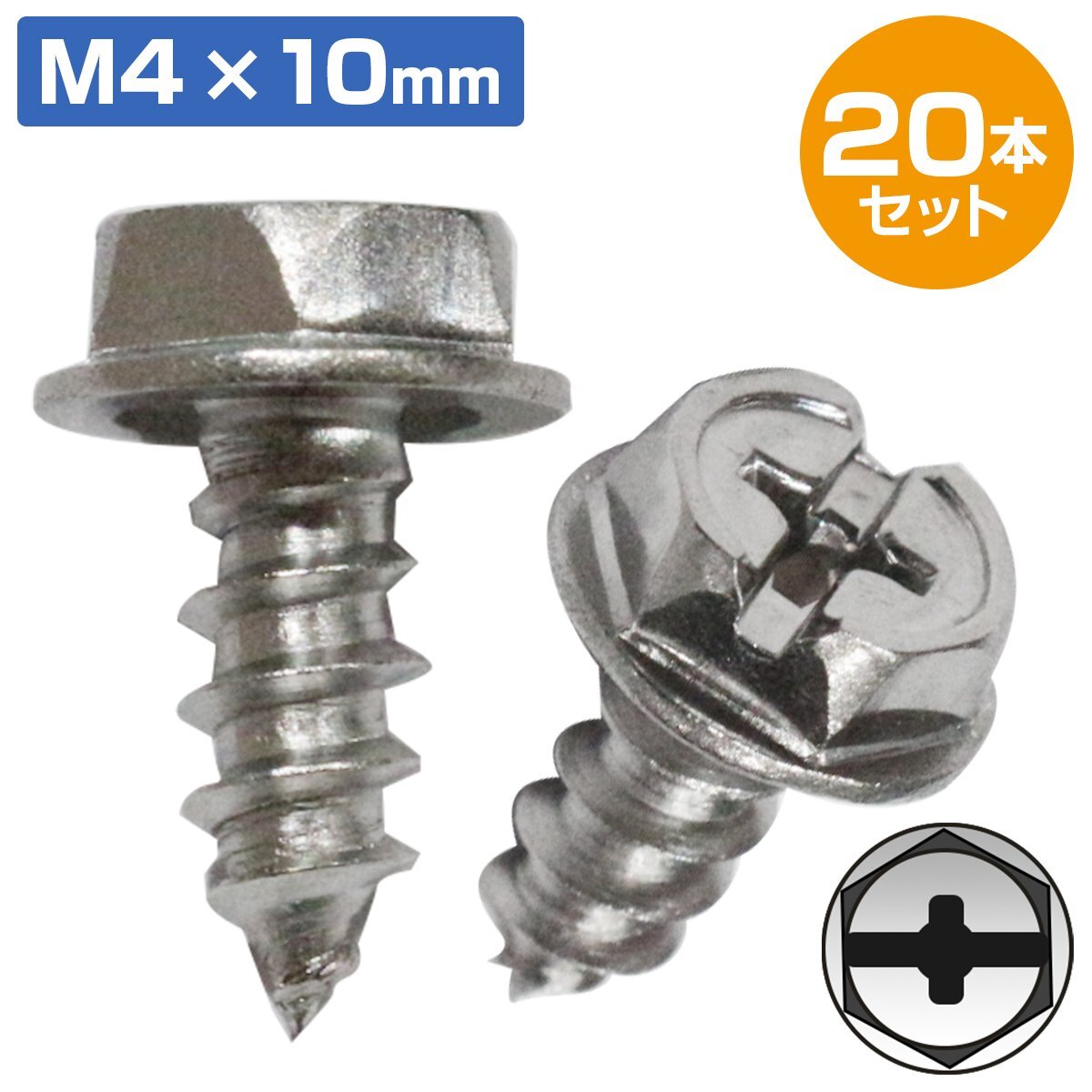 20本set 機械 家具 自動車 バイク 木材 ハードボード 石綿 固定用 部品 修理 DIY シルバー 銀 タッピングネジ ボルト M4 10mm