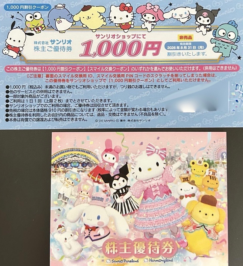 サンリオの株主なのでもらった優待券になります。