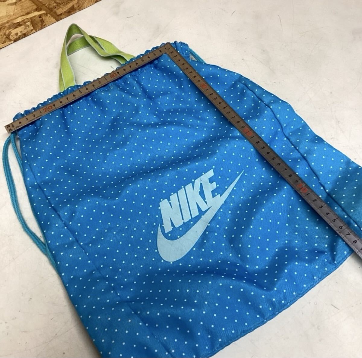 NIKEのブルー系ナップサックになります。軽量で使いやすく、スポーツや通学、ジム用など幅広く活躍する定番人気モデルです。汚れあり、名前の記載がありますので気になる方はご遠慮ください。未清掃品のため現状渡しです。通学バッグや部活用の簡易バッグをお探しの方におすすめです。