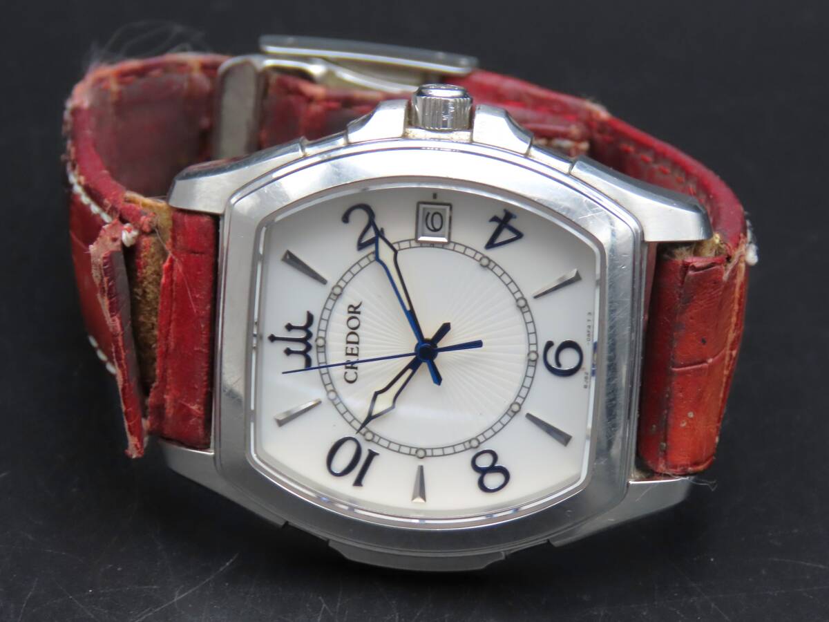 1円~! 稼動品★正規品 SEIKO セイコー 8J82-0AC0 クレドール パシフィーク クォーツ デイト 純正ブレス メンズ腕時計 PPKLG2421