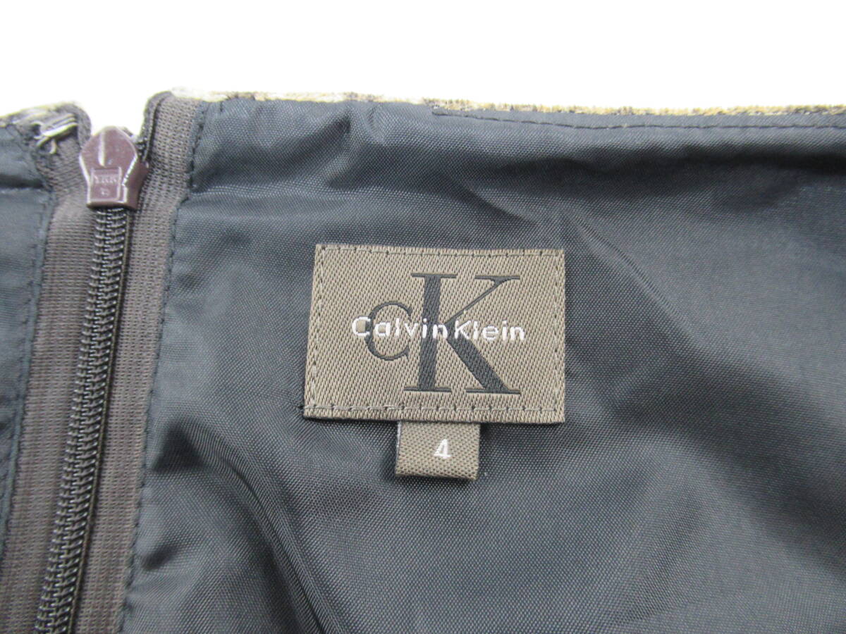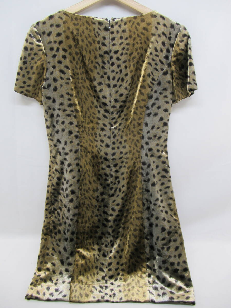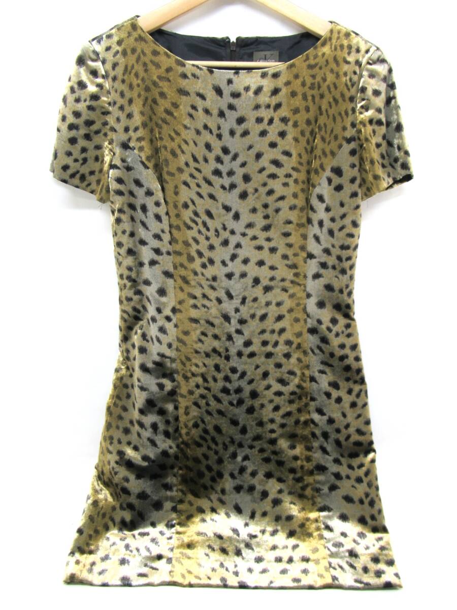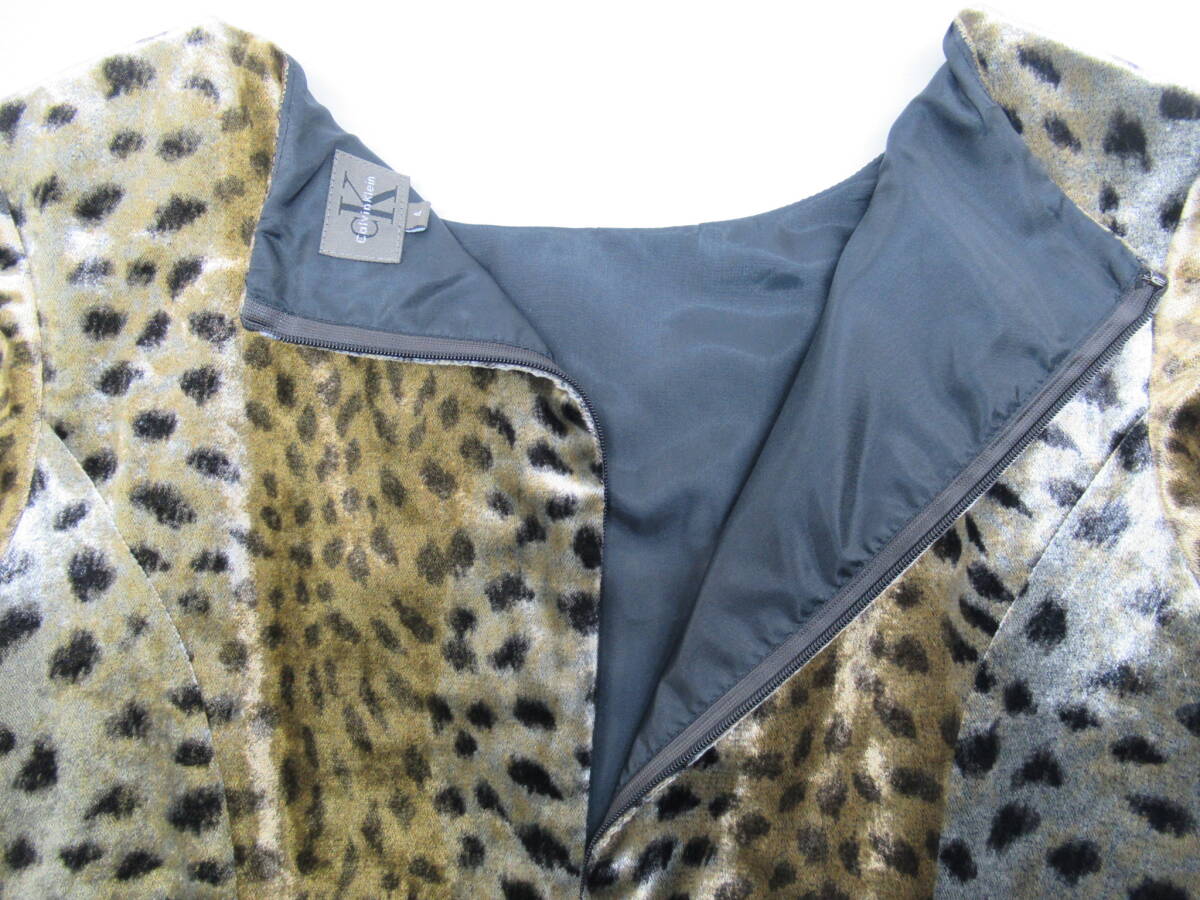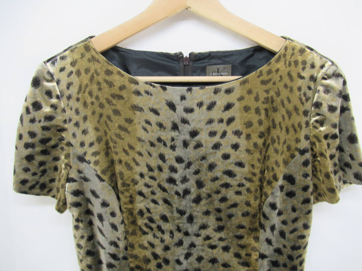 【送900円】3523 Calvin Klein カルバンクライン レオパード柄タイトワンピース ベルベット 半袖 膝丈 ヒョウ柄 綿×レーヨン 4