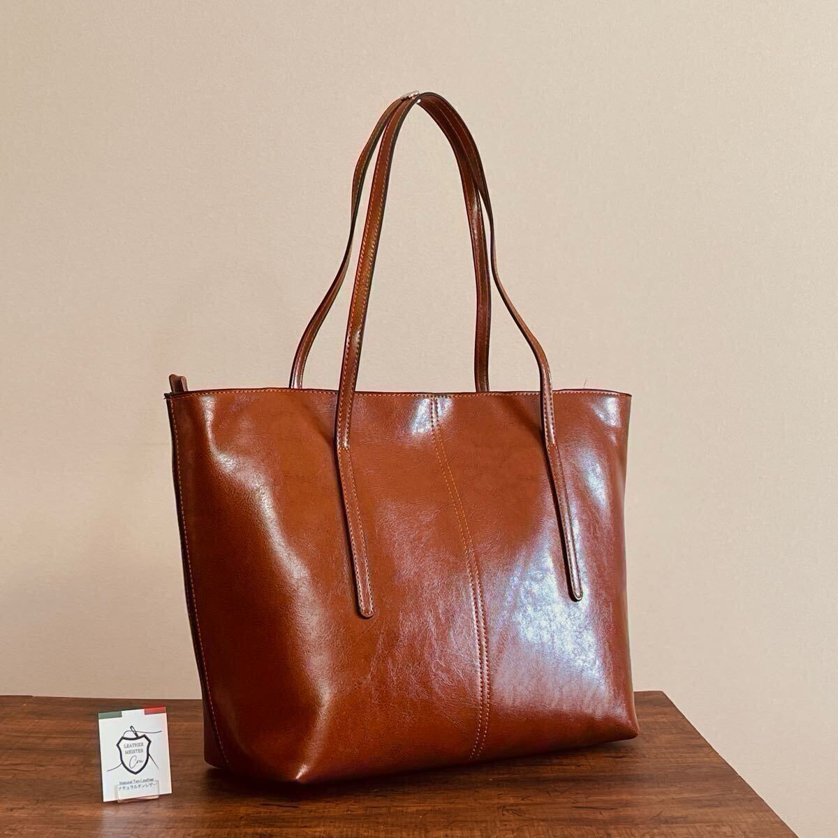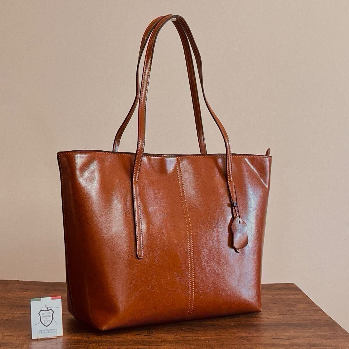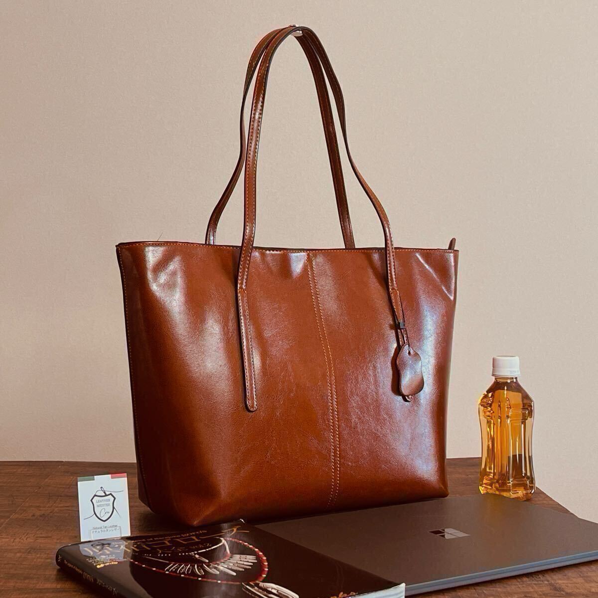 たっぷりの書類を詰め込みたいビジネスシーンや、休日のちょっとした旅行にも好相性な頼れる大容量の本革シンプルトートです。
