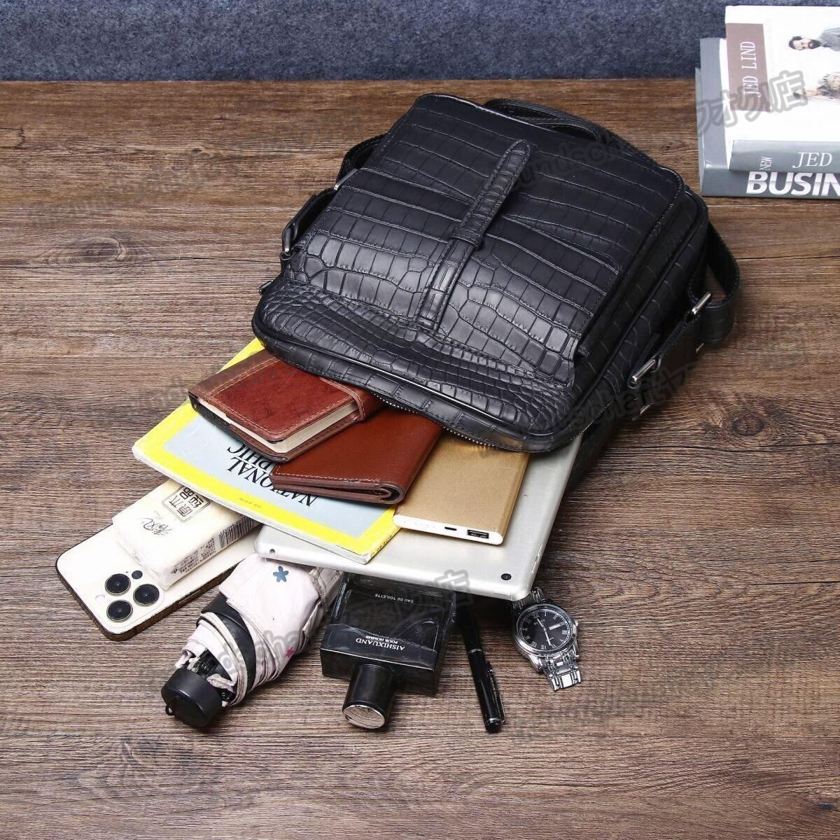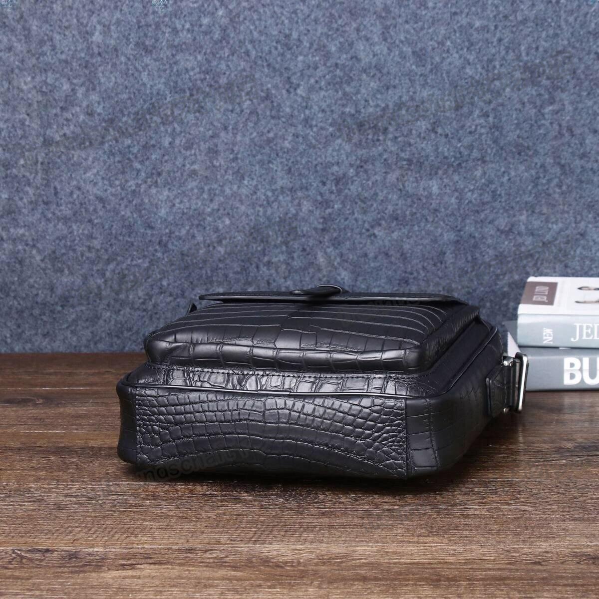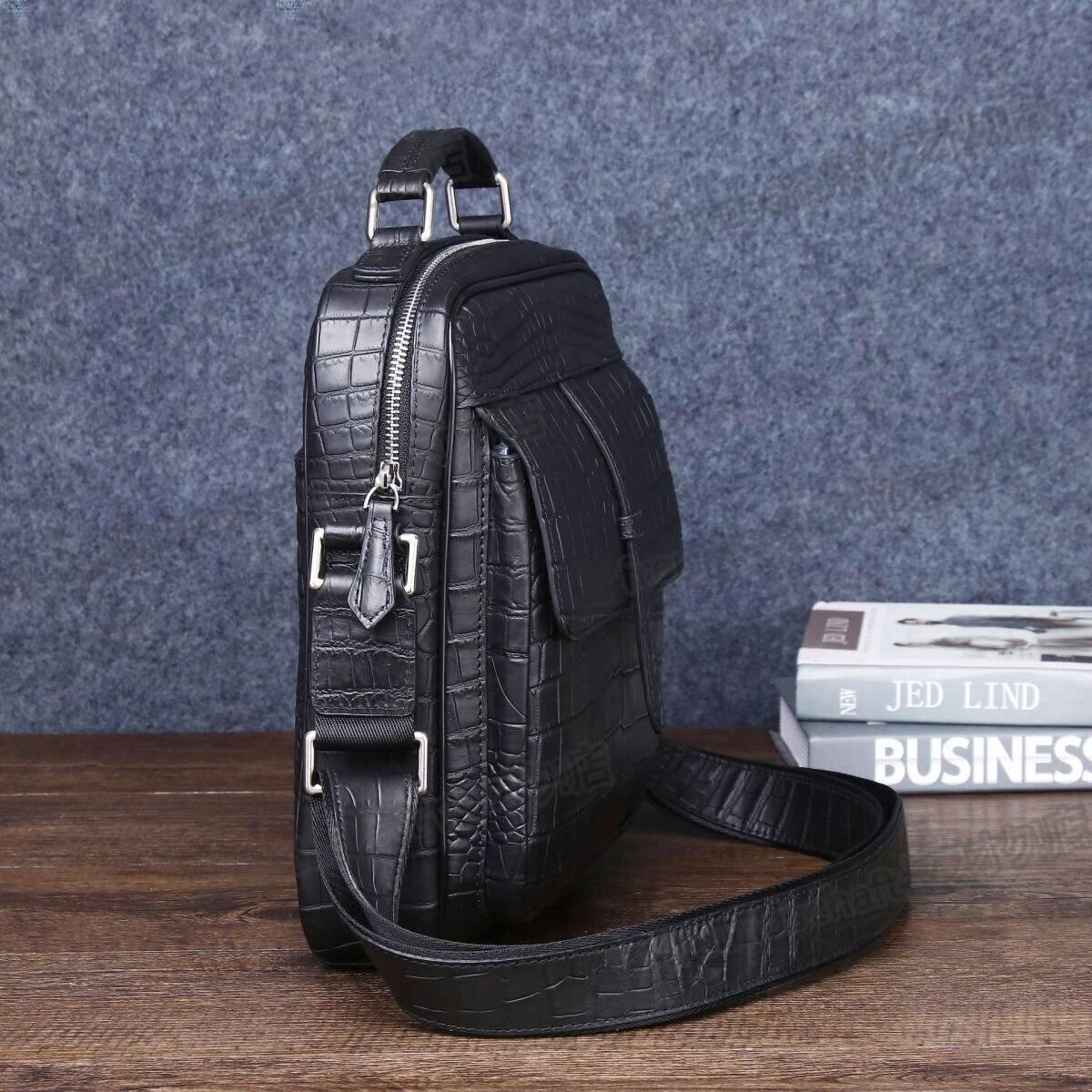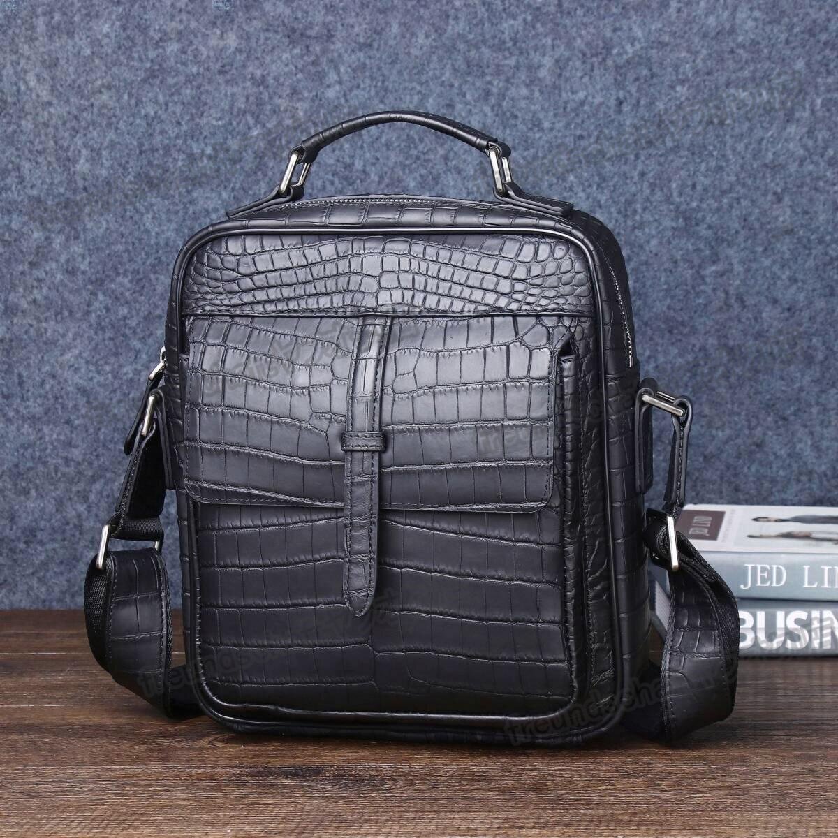 マット仕上げ クロコダイル本革 ワニ革 メンズ ショルダーバッグ 肩掛け メッセンジャーバッグ 斜めがけ 腹部革 センター取り zchw0292