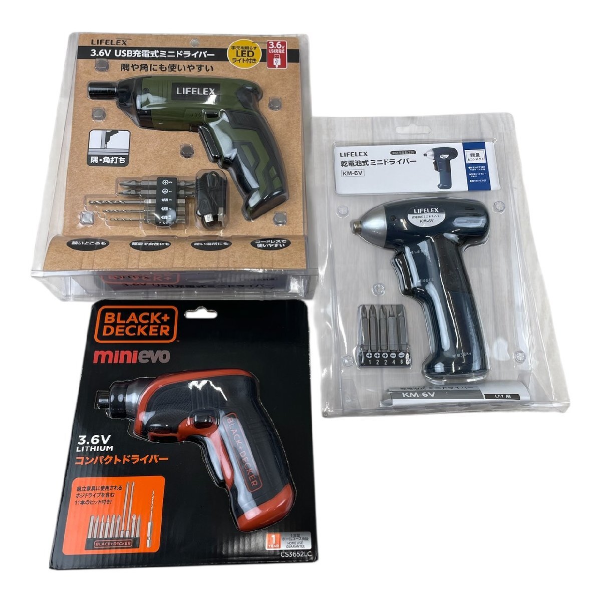 | 商品名 | ミニドライバー 3点セット BLACK+DECKER コンパクトドライバー LIFELEX 3.6V USB充電式ミニドライバー 乾電池式ミニドライバー |