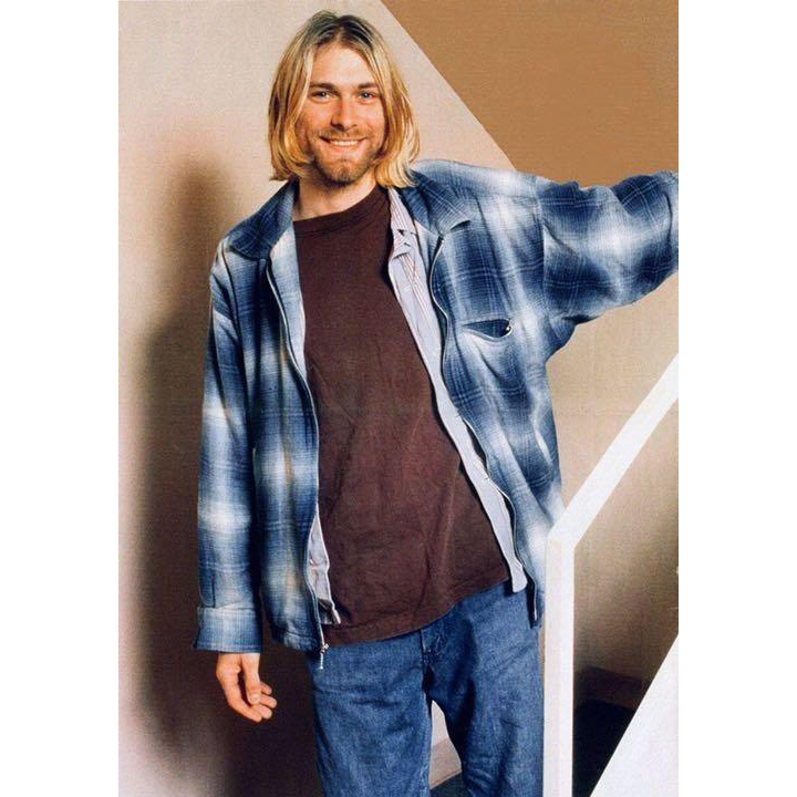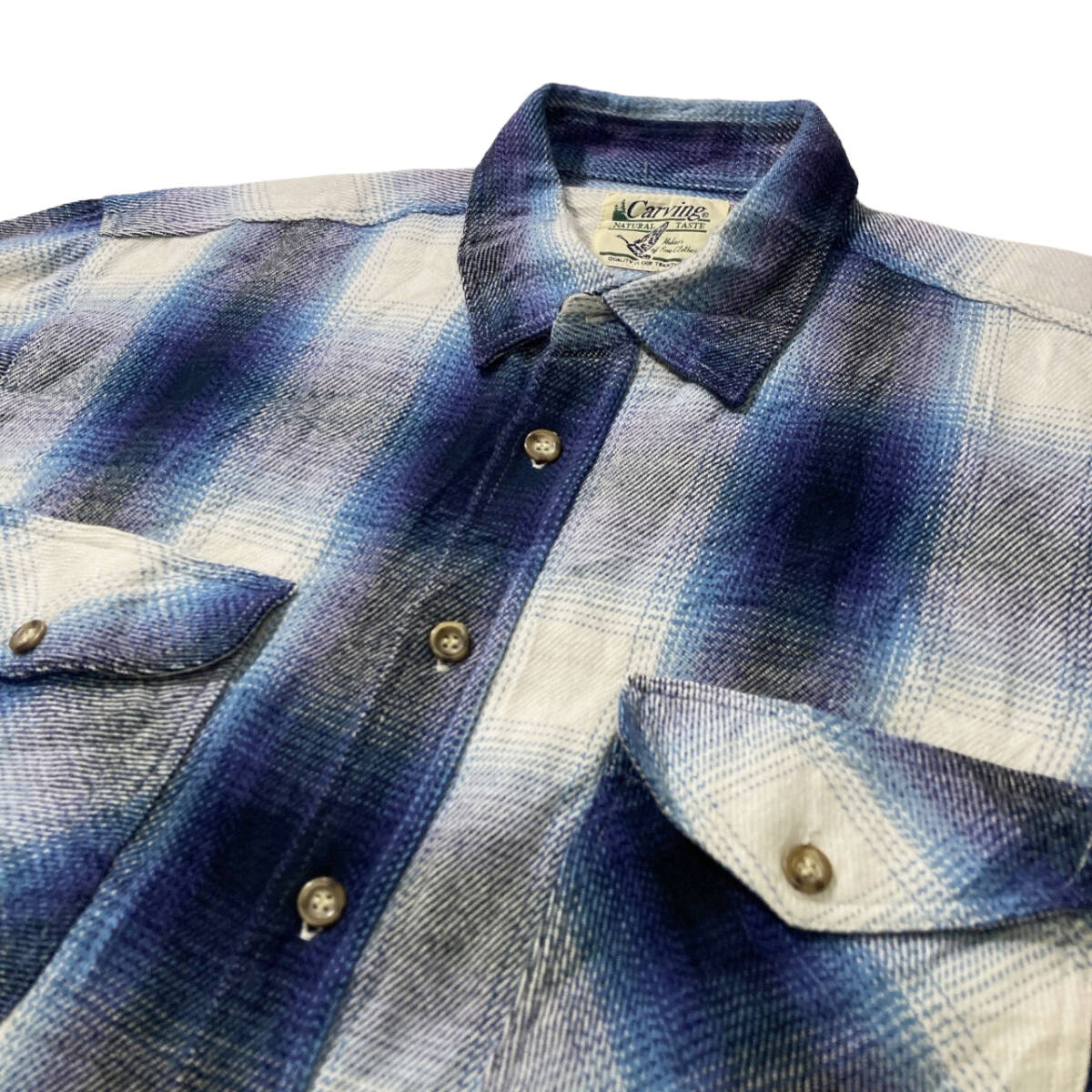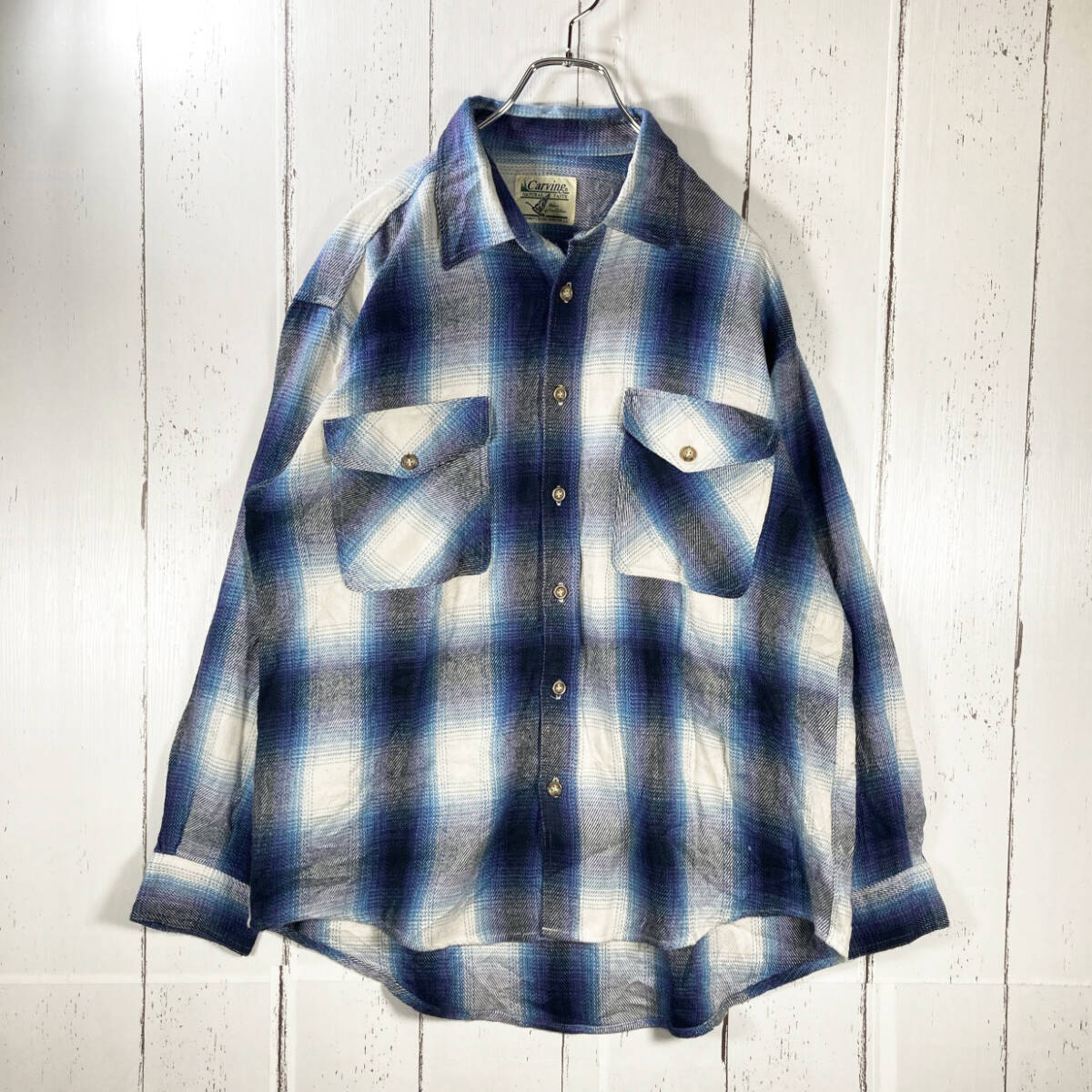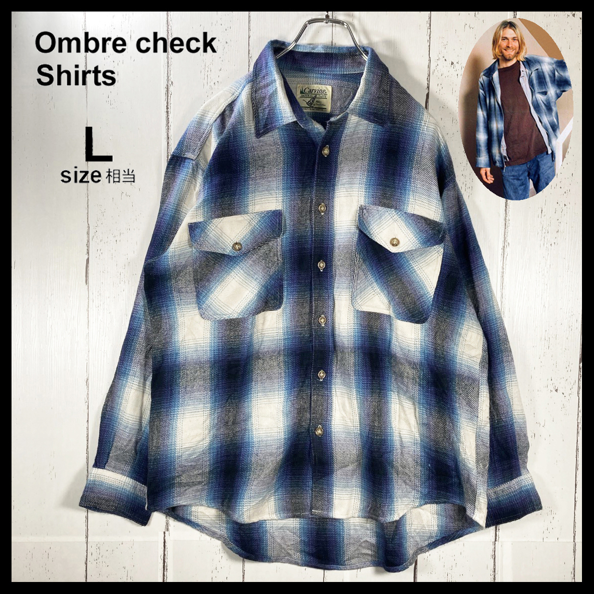 【USED】90s ビンテージ オンブレ シャドーチェック柄 長袖シャツ カートコバーン 古着 ネイビー ( L size 相当 ) ☆送料無料☆