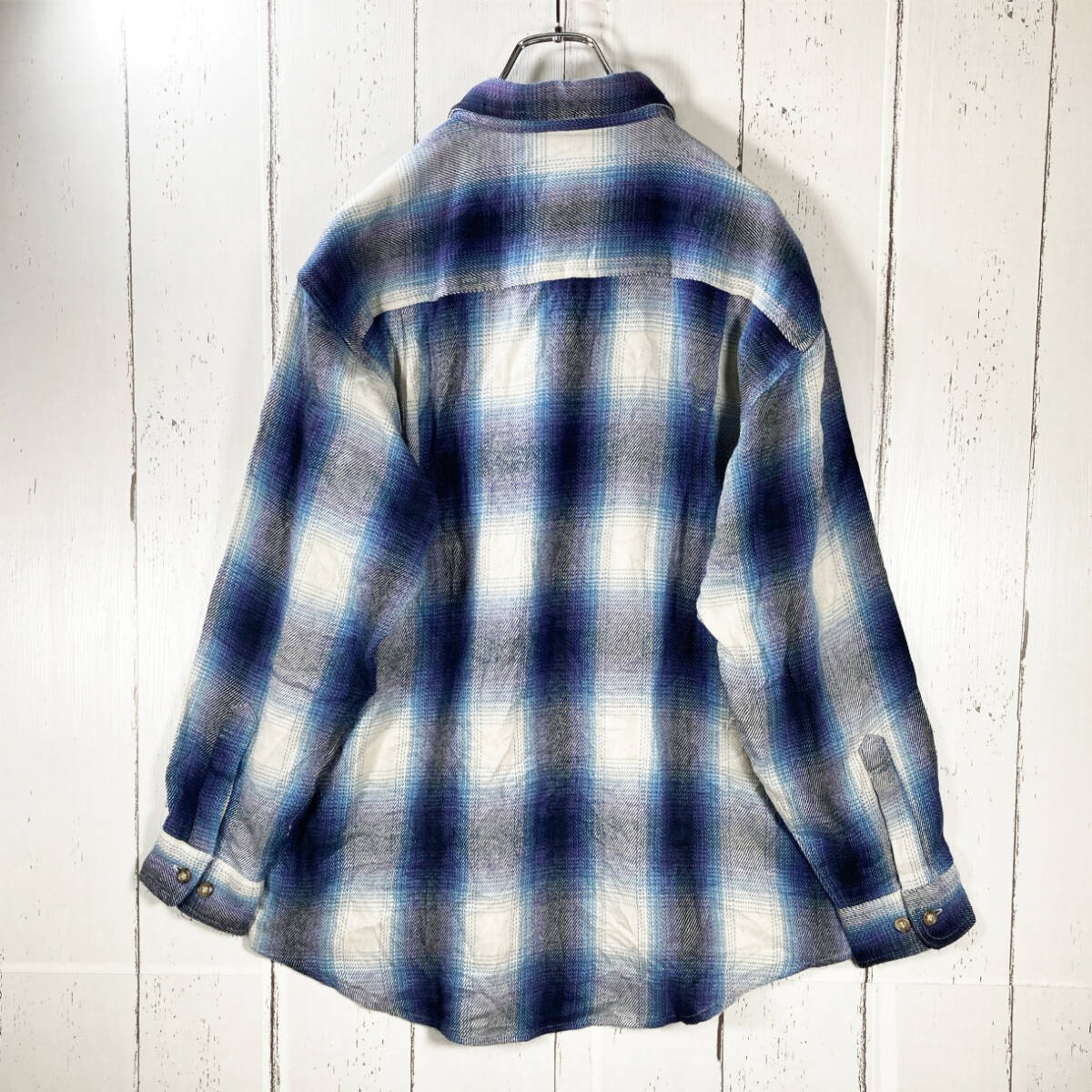 《USED》ombre shadow checkered pattern shirt( LL size )