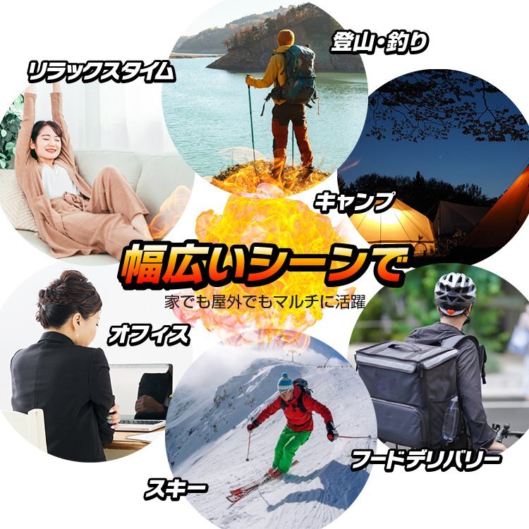 お部屋やオフィスでの着用はもちろん、キャンプや登山、釣り、車中泊などのアウトドアシーン、スキーやスノーボード、スケートなどのウィンタースポーツ、通勤通学での自転車やバイク、またフードデリバリーなど幅広いシーンで活躍します。