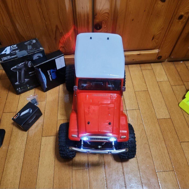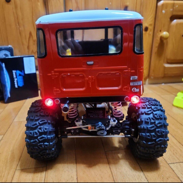 ボディはランドクルーザー。電飾付き。振動で光るバックファイヤーマフラー付き