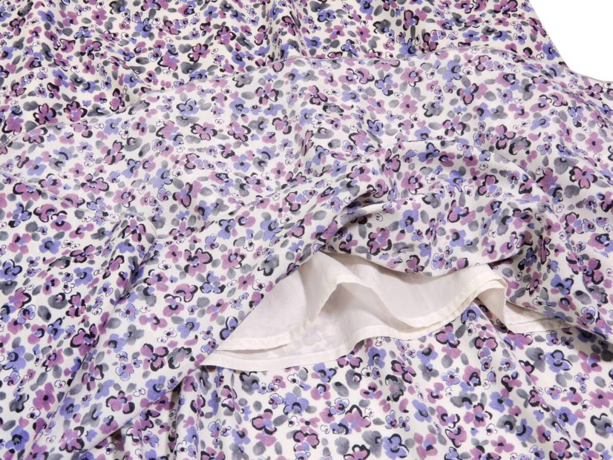 アンティークデシンの少しシボ感のある素材に乗せたオリジナルのフラワープリントと小粒のドットプリント素材を使用しています。