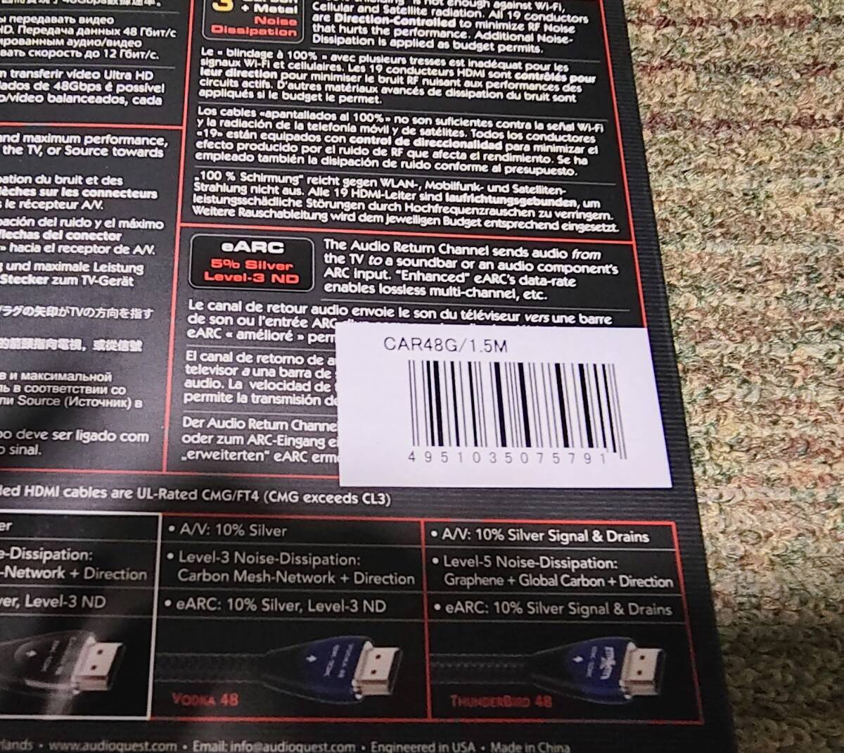 audioquest オーディオクエスト ウルトラハイスピード HDMIケーブル 1.5m Carbon48 CAR48G/1.5M