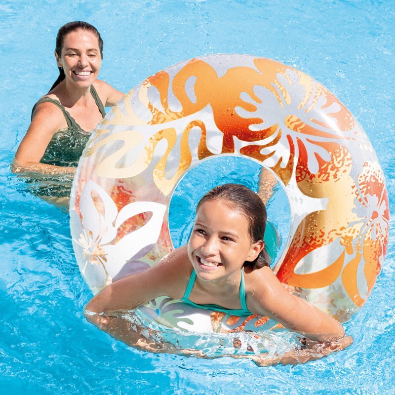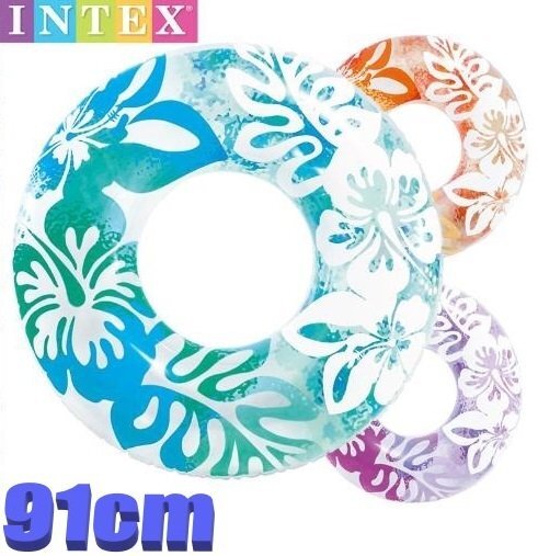 浮き輪 オレンジ うきわ 大人 子供 共用 サイズ 91cm スイムリング ハイビスカス 大人用 子供用 INTEX 59251