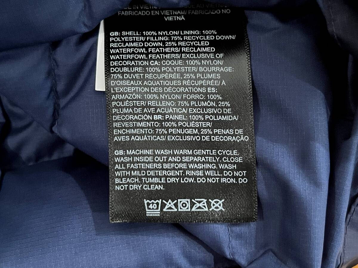 サイズ:US-S(私感ですが、日本の商品より1サイズ以上は大きめかと思います。) くれぐれも詳細は採寸サイズをご参考に為さって下さいませ。 【S】着丈69cm 身幅54cm 肩幅46cm 袖丈69cm 【M】着丈70cm 身幅58cm 肩幅48cm 袖丈70cm 【L】着丈71cm 身幅62cm 肩幅50cm 袖丈70.5cm 【XL】着丈72cm 身幅66cm 肩幅52cm 袖丈71.5cm 【XXL】着丈73cm 身幅70cm 肩幅54cm 袖丈72cm ※平置き素人採寸ですので、多少の誤差はご了承下さい。 本物の証であるホログラム付き シェル:ナイロン100% ライニング:ポリエステル100% フィリング:ダウン75%、フェザー25% その他:ポリエステル100% |