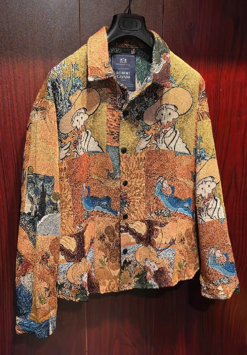 最高級※定価10万◆イタリア・ローマ発*ROBERT CAVANI*高級リネン/麻生地使用・ファン・ゴッホの名作 ・シャツ/ジャンパー46・Mサイズ