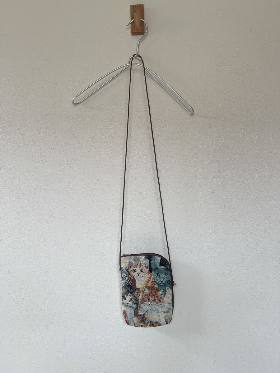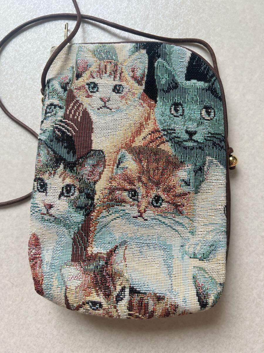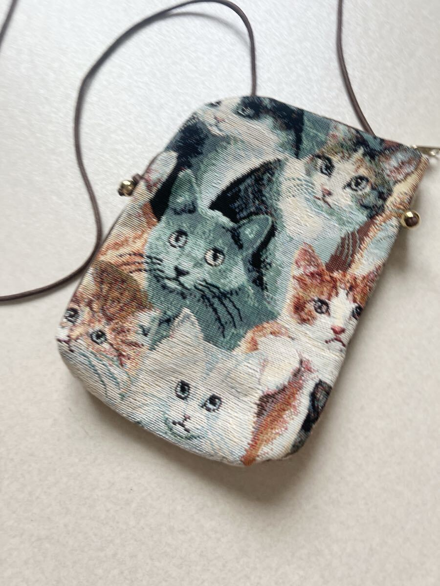 かわいい猫ちゃんのコブラン織ショルダーポーチです。