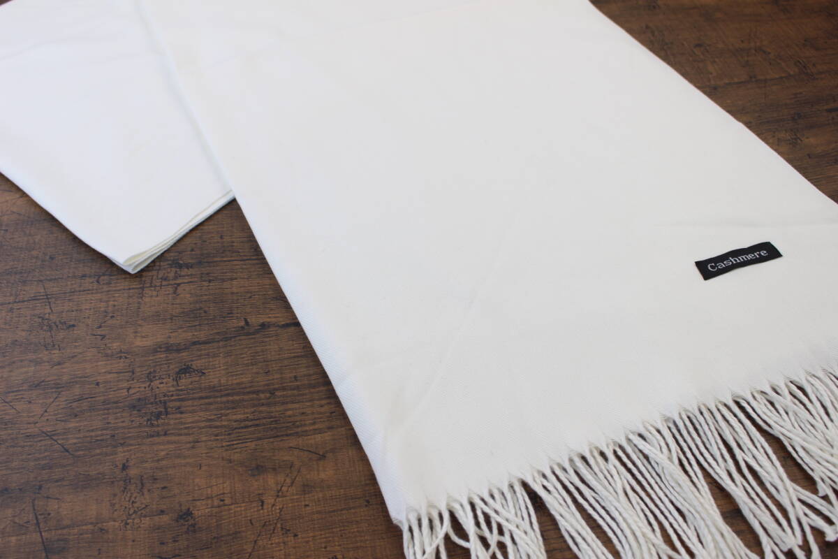 新品【カシミア Cashmere】無地 Plain クリームホワイト C.WHITE 白 ライトタッチ 大判 ストール/マフラー 訳あり