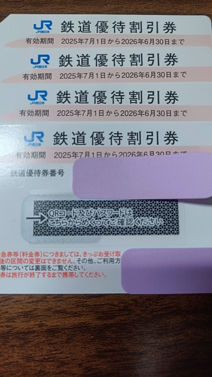 JR西日本 株主優待 鉄道優待割引券4枚での出品です。