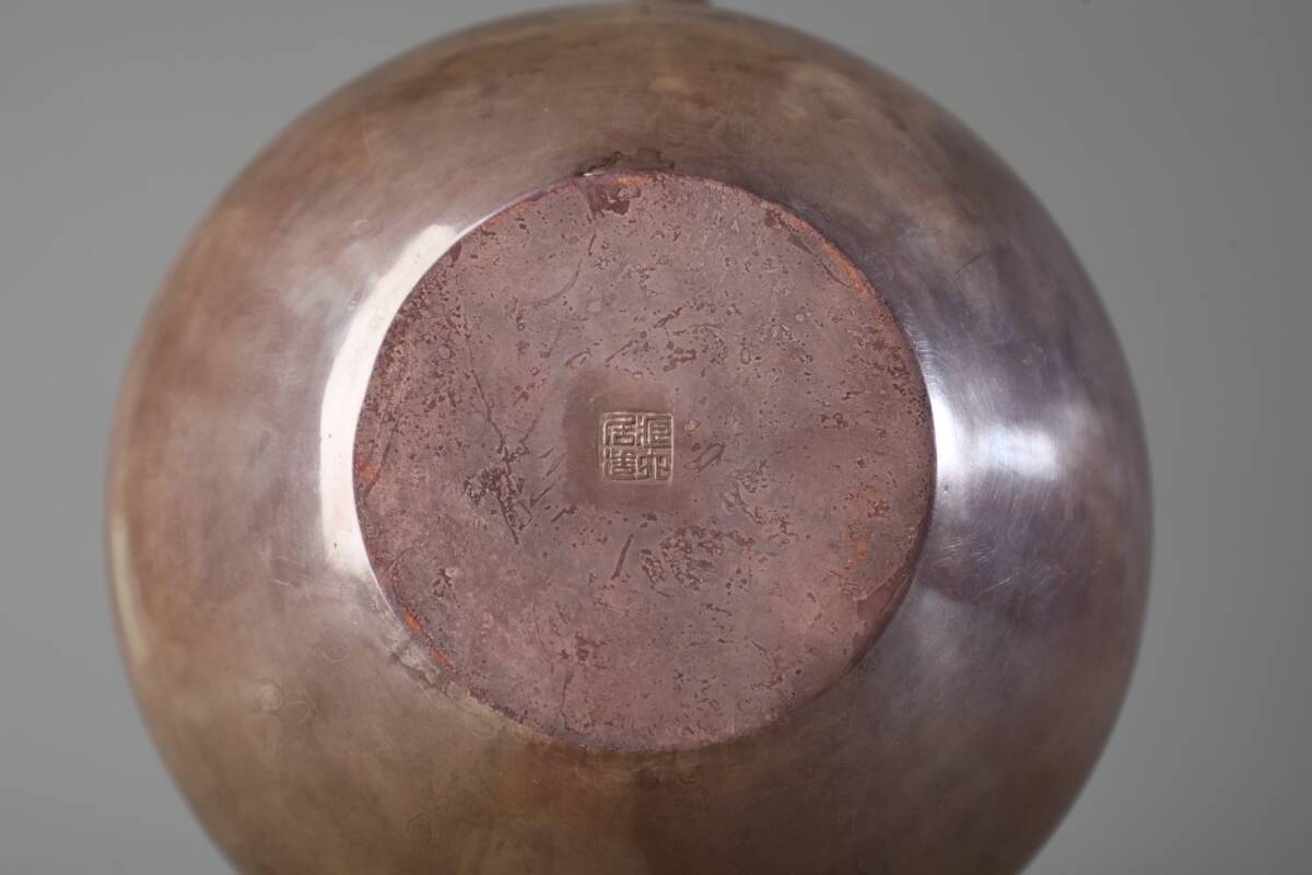 在銘:蔵六居造 時期:昭和期 寸法:高さ21cm、長さ17 cm、腹径16 cm、重さ867g、容量約1600cc 状態説明:全体の制作はきちんとしていて、保存状態がよくて、品の相は一流です、しみ、スレ、汚れ、いくつかのアタリ、銀特有の変色があります。具体的な保存状態は写真を見てください。 掲載写真をご確認ください。 ※モニターの具合により実際の色と異なる場合がございます。ご了承ください。 | |||