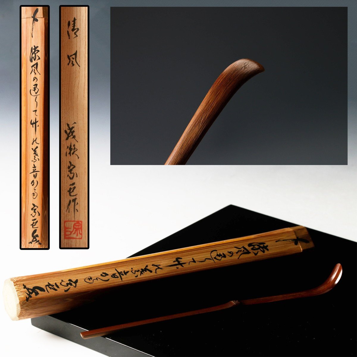 【佳香】成瀬宗巨 銘『清風』竹茶杓 歌詠み 共箱 茶道具 本物保証