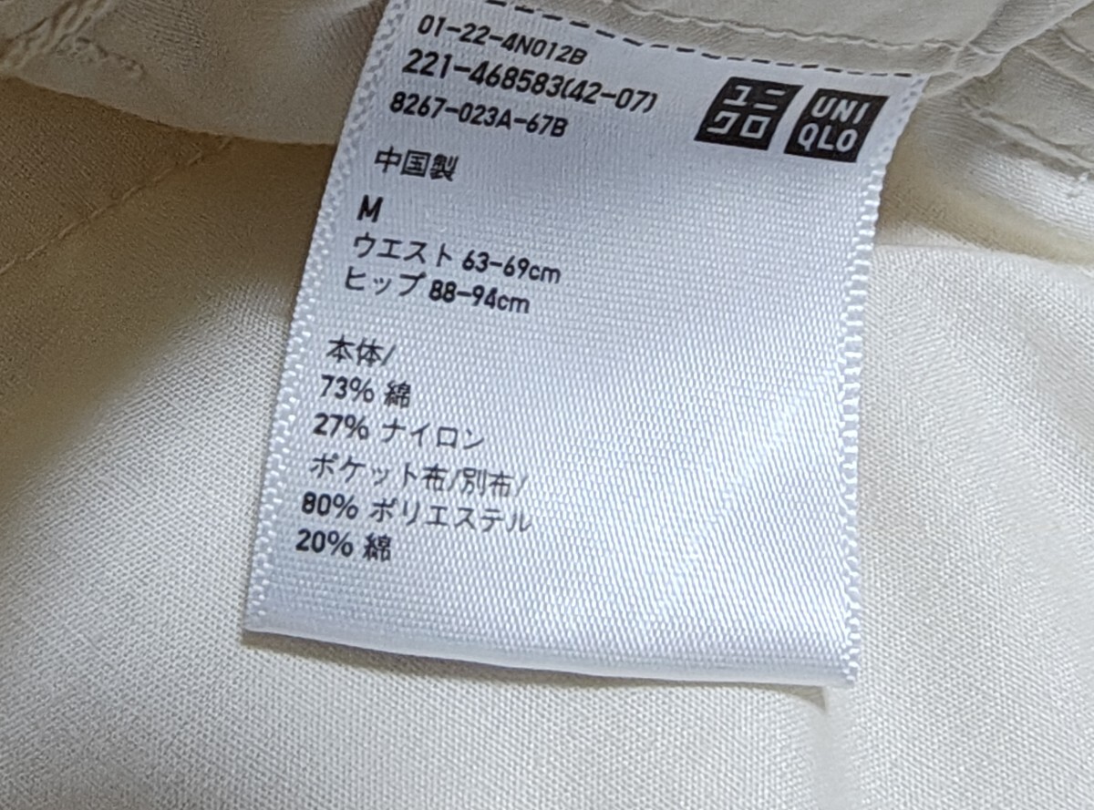 【UNIQLO】ユニクロ ワイド フィット パラシュート カーゴ パンツ イージー 薄手 春夏 レディース サイズM 白