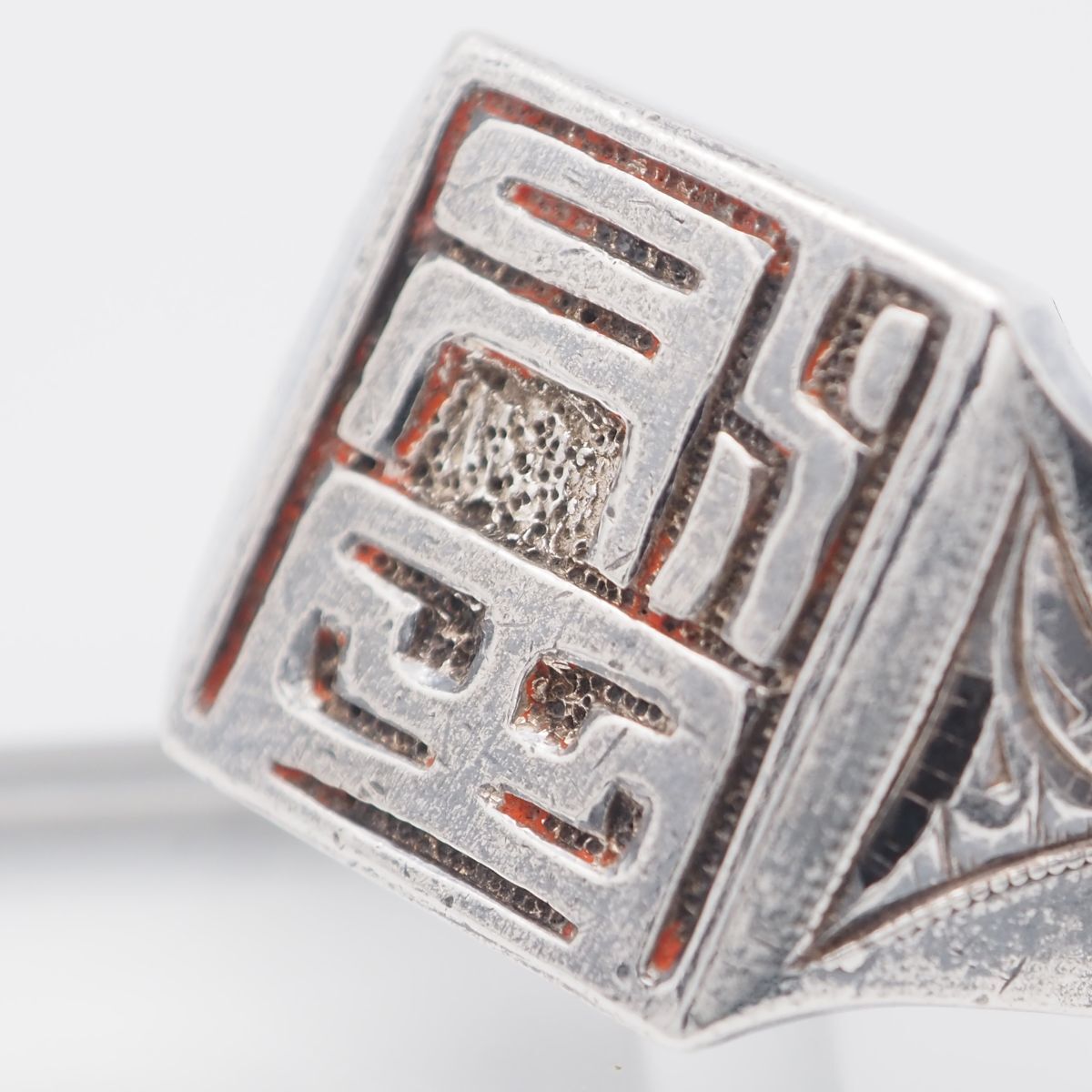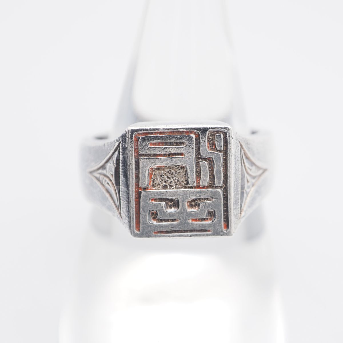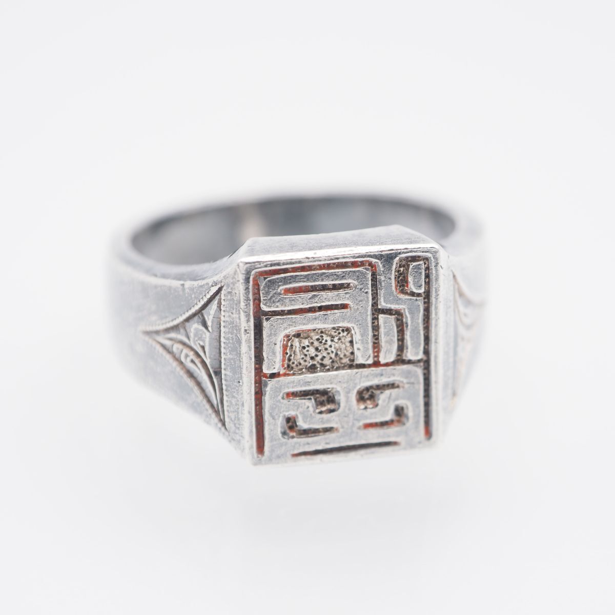J664 ヴィンテージ SILVER刻印 リング 印台 デザイン シルバー 指輪 18号