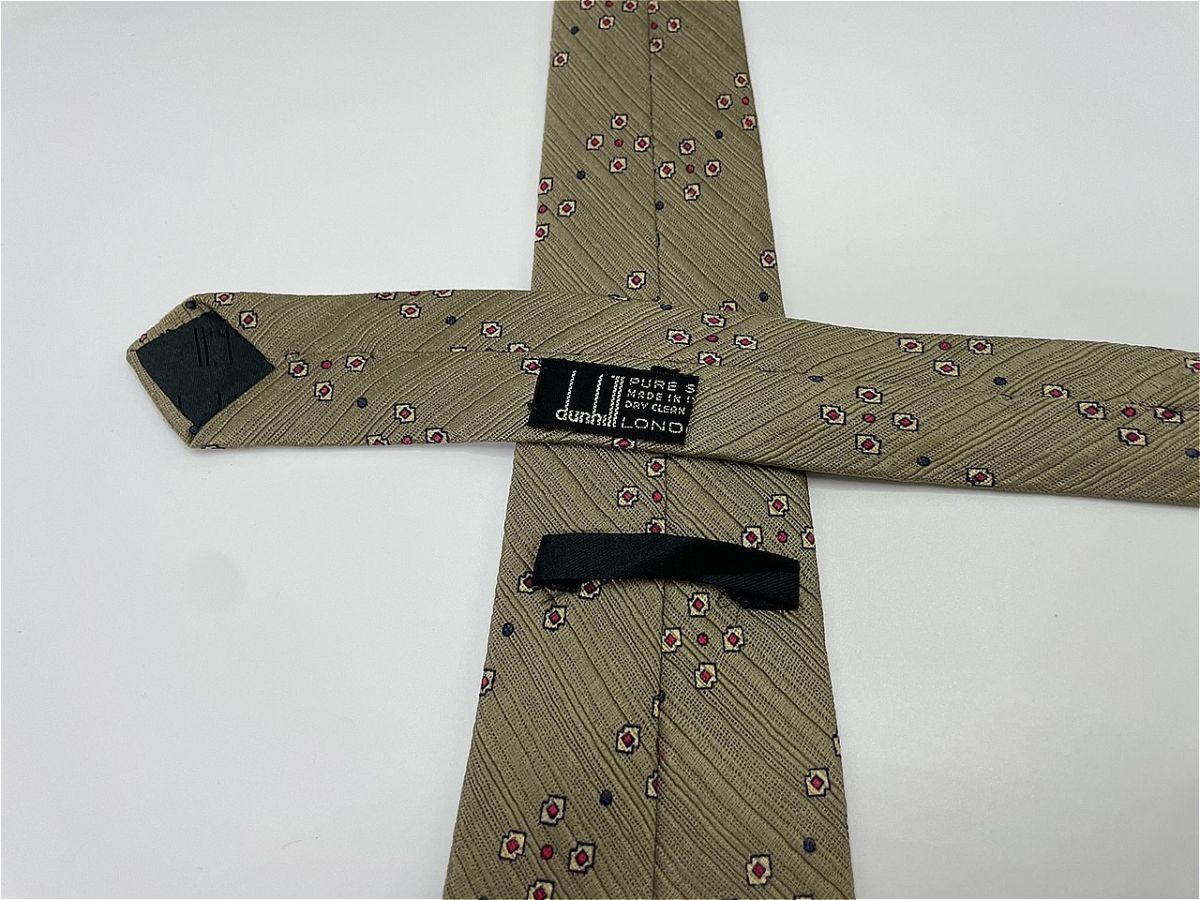 【超美品】dunhill ダンヒル ロゴ&ドット柄 ネクタイ 3本以上 送料無料 メンズ ブラウン 1103048