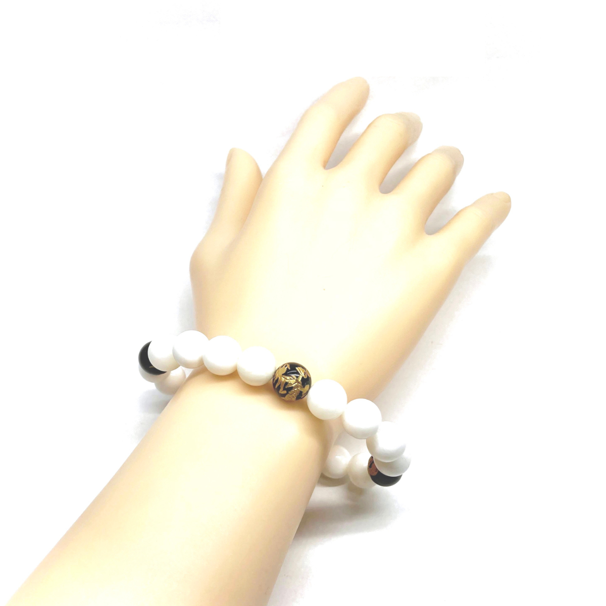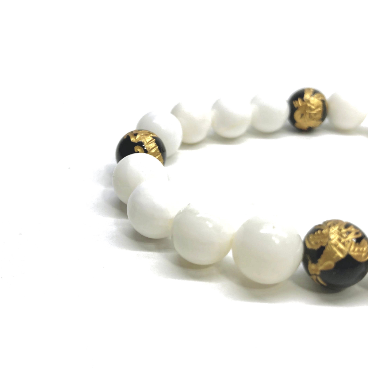 こちらは、四神獣金彫オニキスとホワイトオニキスを組み合わせたパワーストーンブレスレットです。四神獣は、中国の伝説で4つの方向(東西南北)を守護する神聖な神。四神獣、厄災から身を守り、多くの運気を呼び込むと言われております。石大きさは程よくインパクトのある10mm玉で内周 約17cmです。 数に限りがございますので気になる方はお早めにどうぞ。