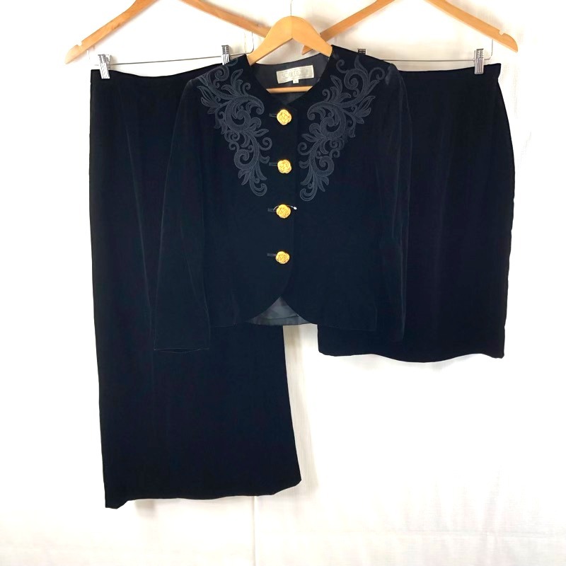 | 商品名 | 東京ソワール ソワール ドルチェ SOIR DOLCE スーツ スカートスーツ 3点 ジャケット 刺繍 金ボタン ベロア 黒 977848 |